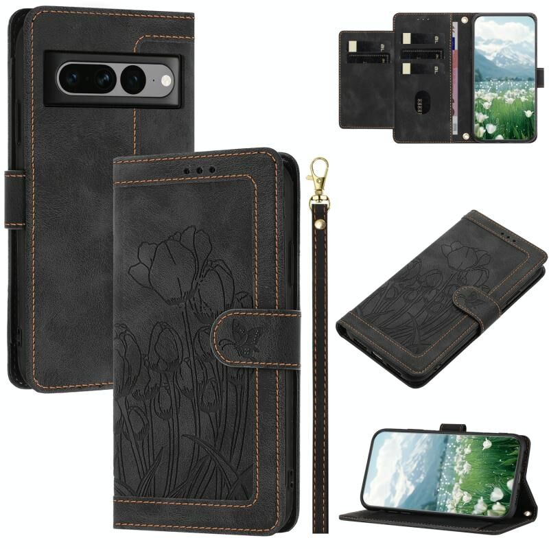 Θήκη τηλεφώνου Google Pixel 7 Pro Tulips Embossed Leather με Λουρί (Ροζ)