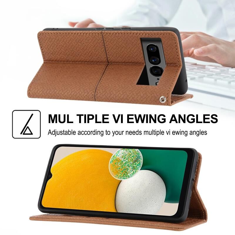 Για το Google Pixel 7 Pro Υφαντή υφή ραφή μαγνητική PU δέρμα τηλέφωνο υπόθεση (καφέ)