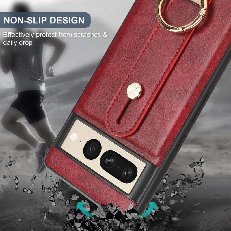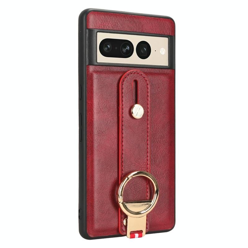 Για το Google Pixel 7 Pro Wristband δέρμα πίσω θήκη τηλεφώνου (κόκκινο)