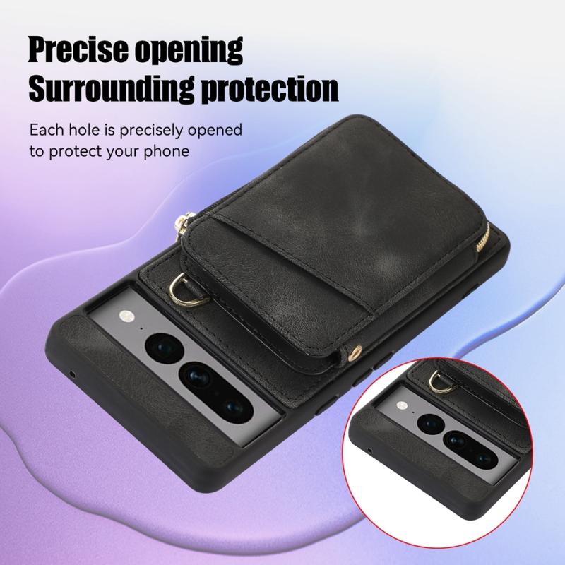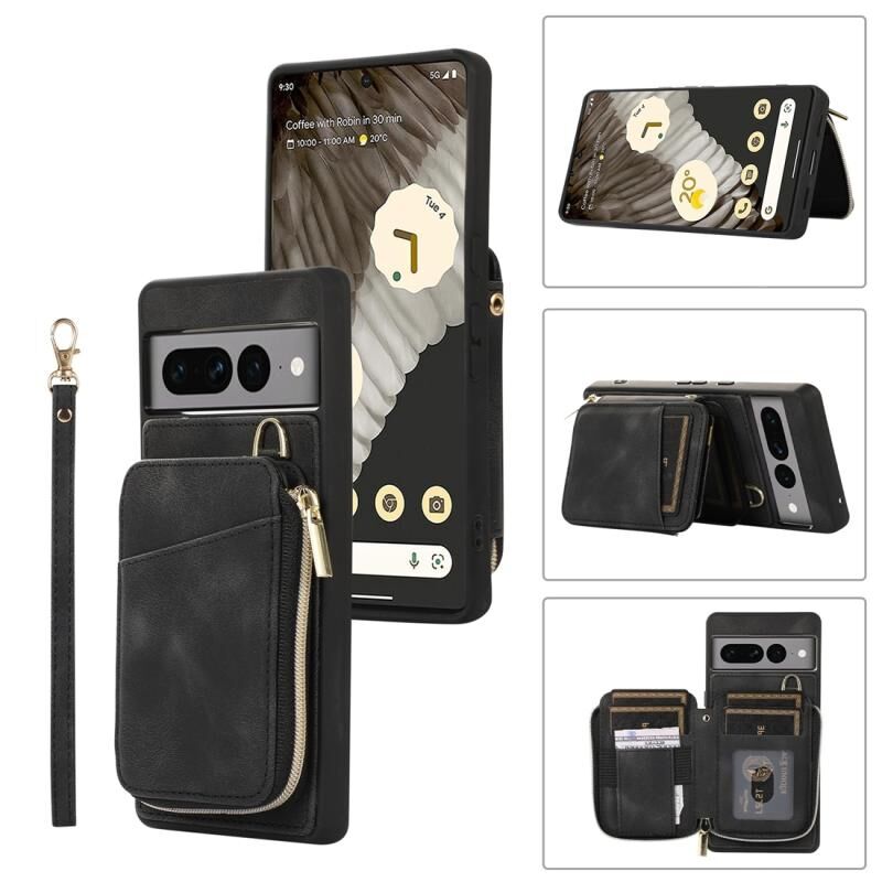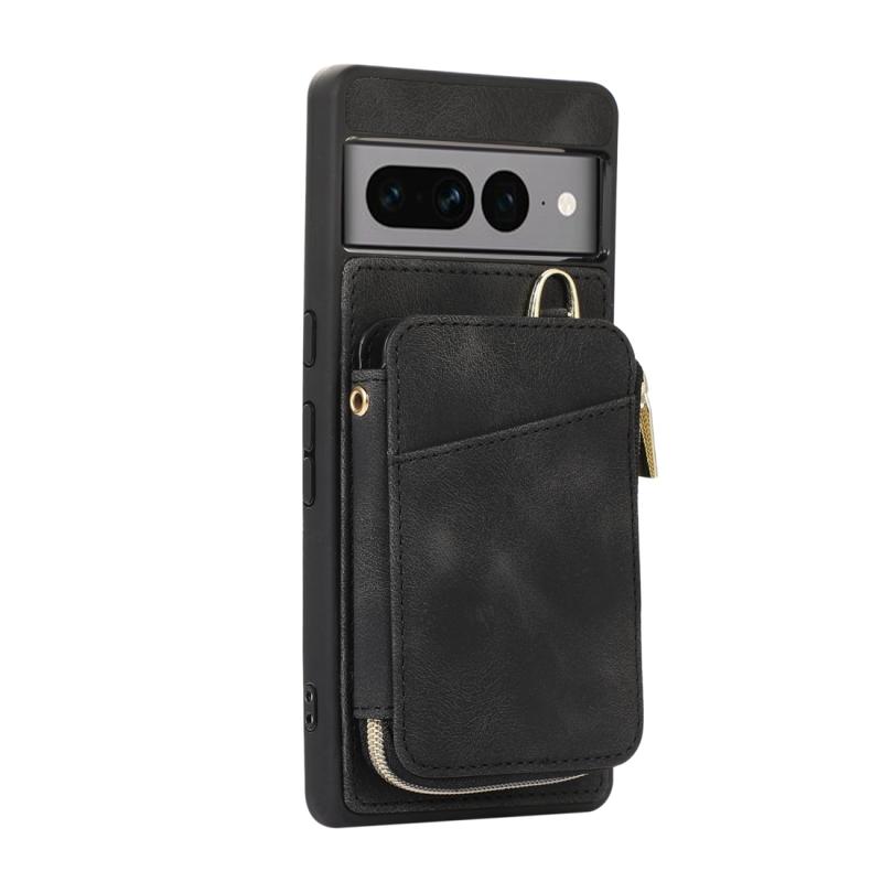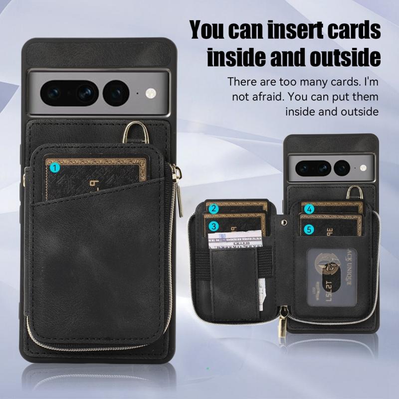 For Google Pixel 7 Pro Zipper Card Bag Back Cover Phone Case(Black)