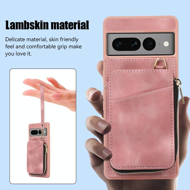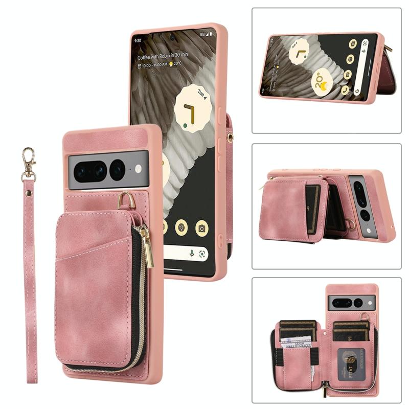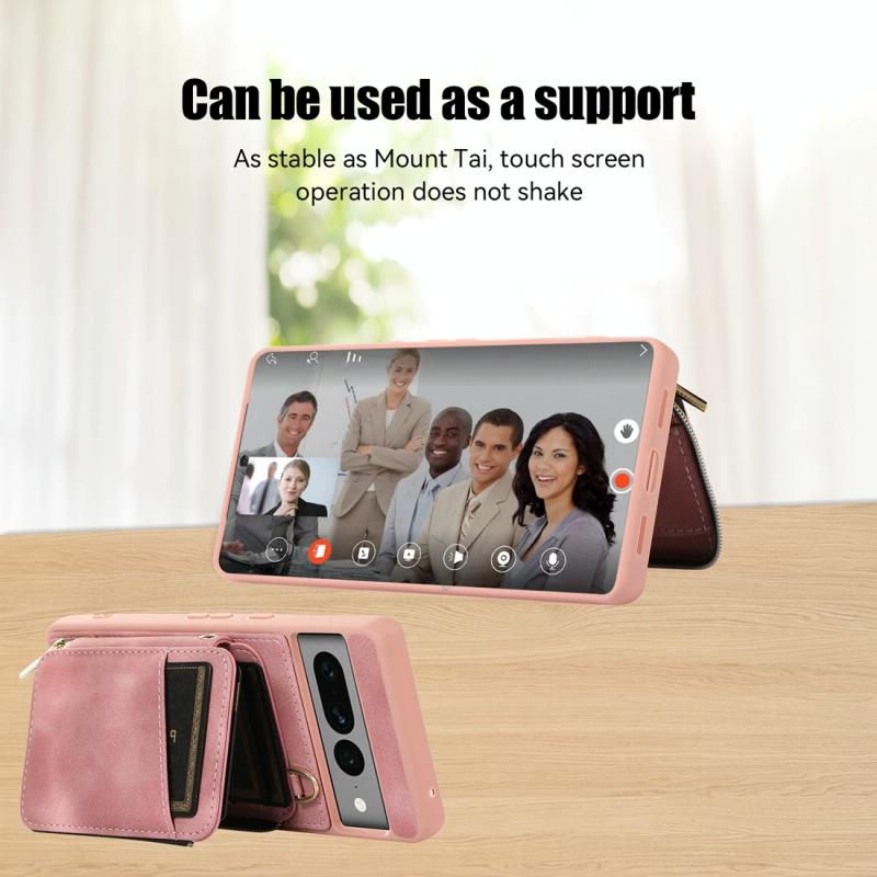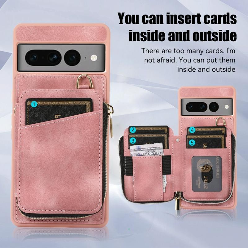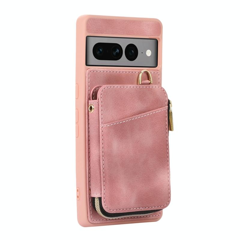 For Google Pixel 7 Pro Zipper Card Bag Back Cover Phone Case(Pink)