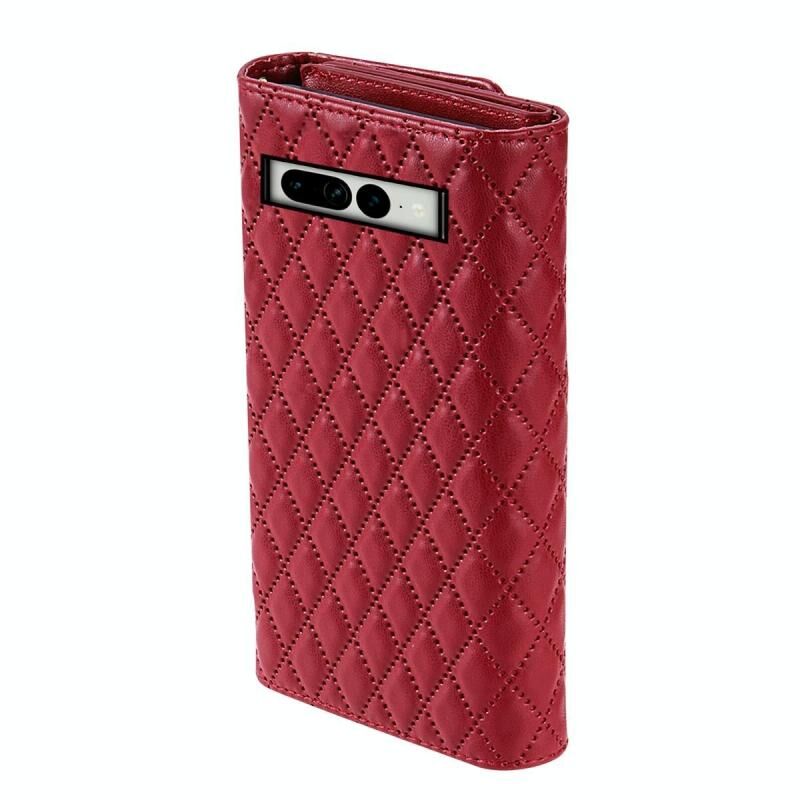 Για το Google Pixel 7 Pro φερμουάρ πορτοφόλι πολλαπλών καρτών ρομβοειδής δερμάτινη θήκη τηλεφώνου (κόκκινο)