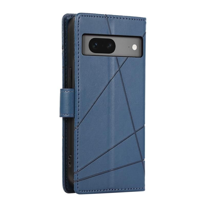 For Google Pixel 7 PU Genuine Leather Texture Embossed Line Phone Case(Blue)