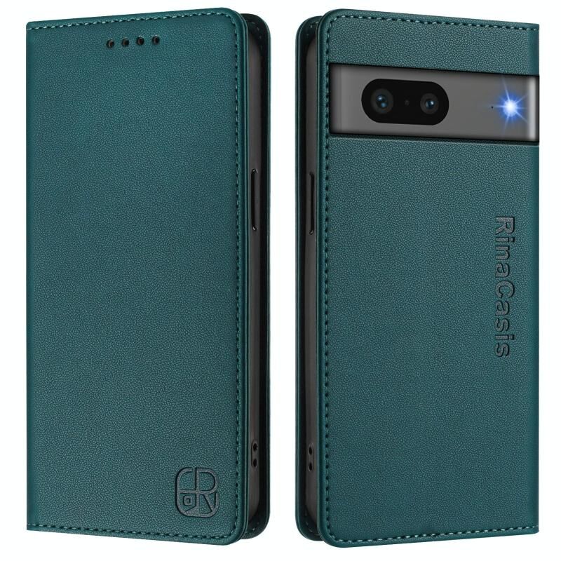 For Google Pixel 7 RC01 Dual-Folded Magnetic Suction RFID Leather Phone Case(Dark Green)