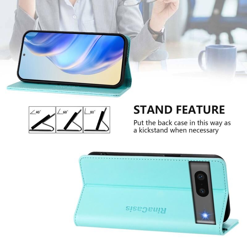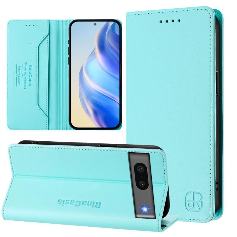 For Google Pixel 7 RC01 Dual-Folded Magnetic Suction RFID Leather Phone Case(Mint Green)
