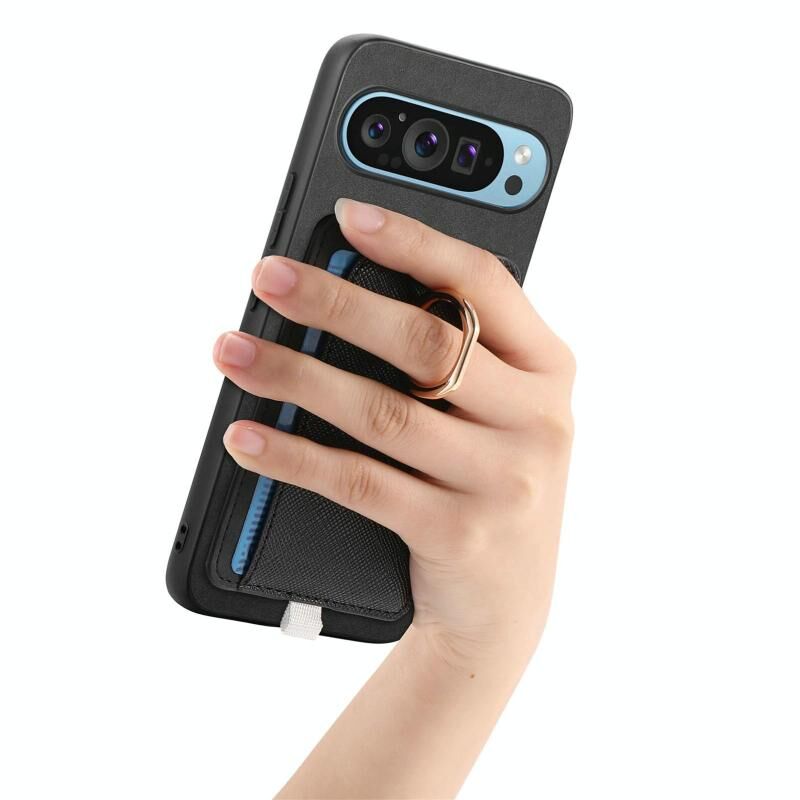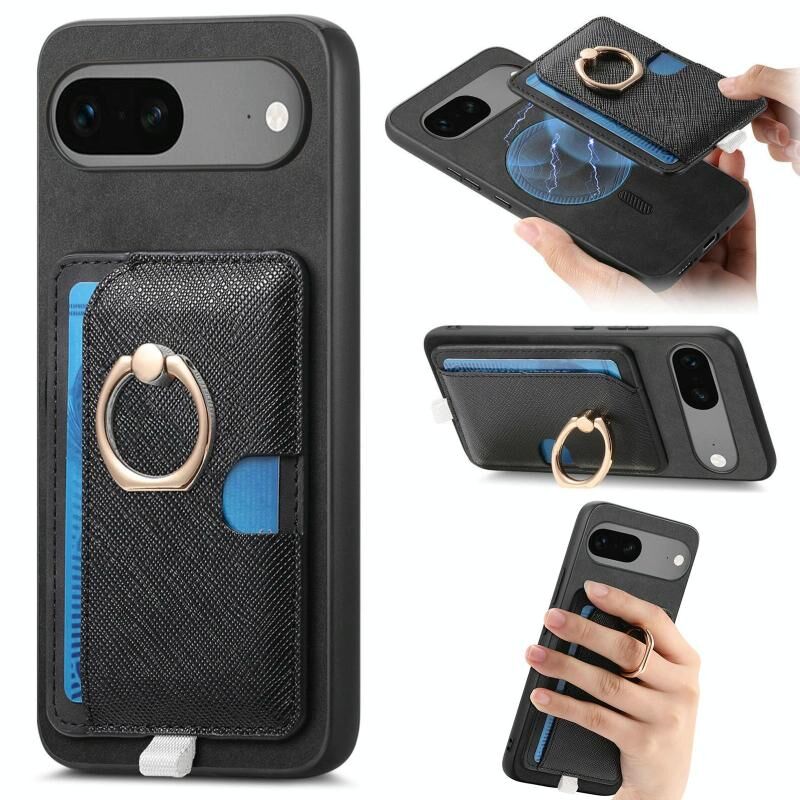 Θήκη τηλεφώνου Google Pixel 7 Retro Cross Leather Ring Side Insert Card Bag MagSafe (Κίτρινο)