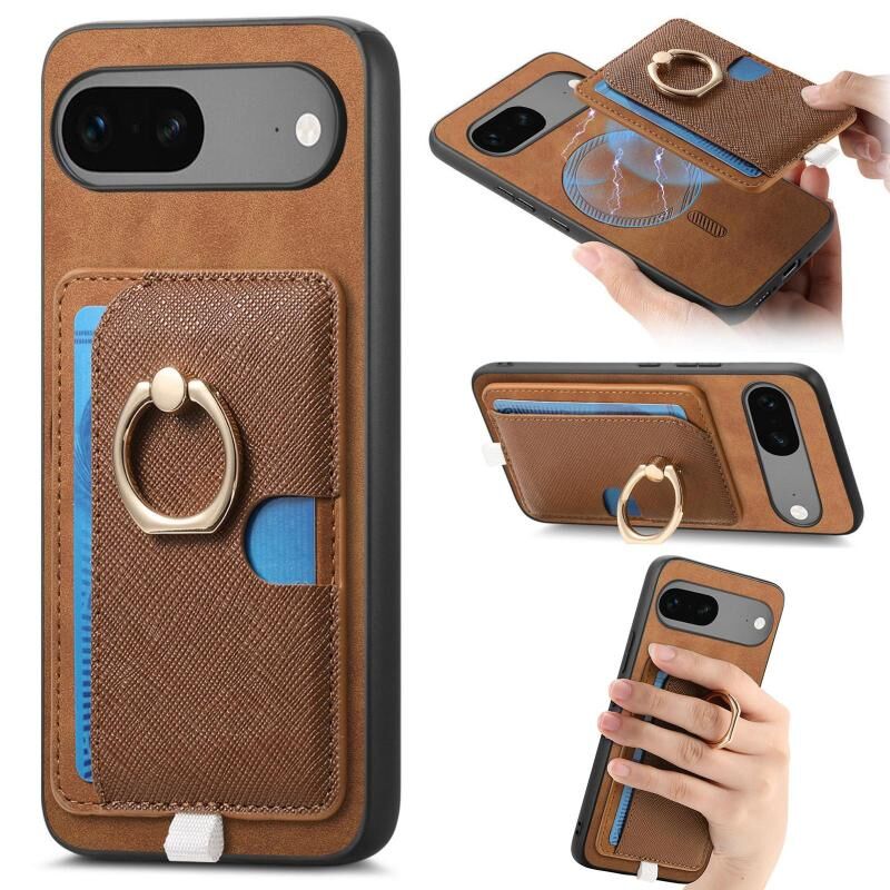 Θήκη τηλεφώνου Google Pixel 7 Retro Cross Leather Ring Side Insert Card Bag MagSafe (Κίτρινο)