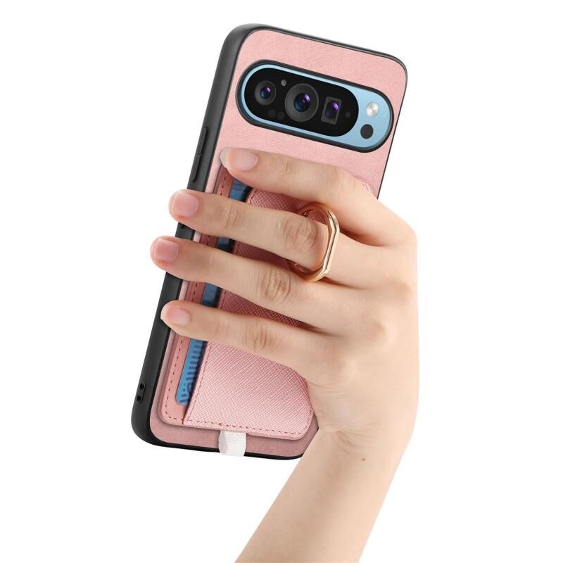 Θήκη τηλεφώνου Google Pixel 7 Retro Cross Leather Ring Side Insert Card Bag MagSafe (Κίτρινο)