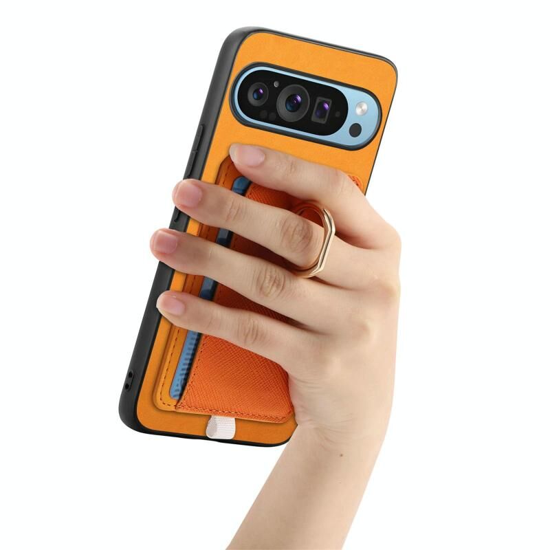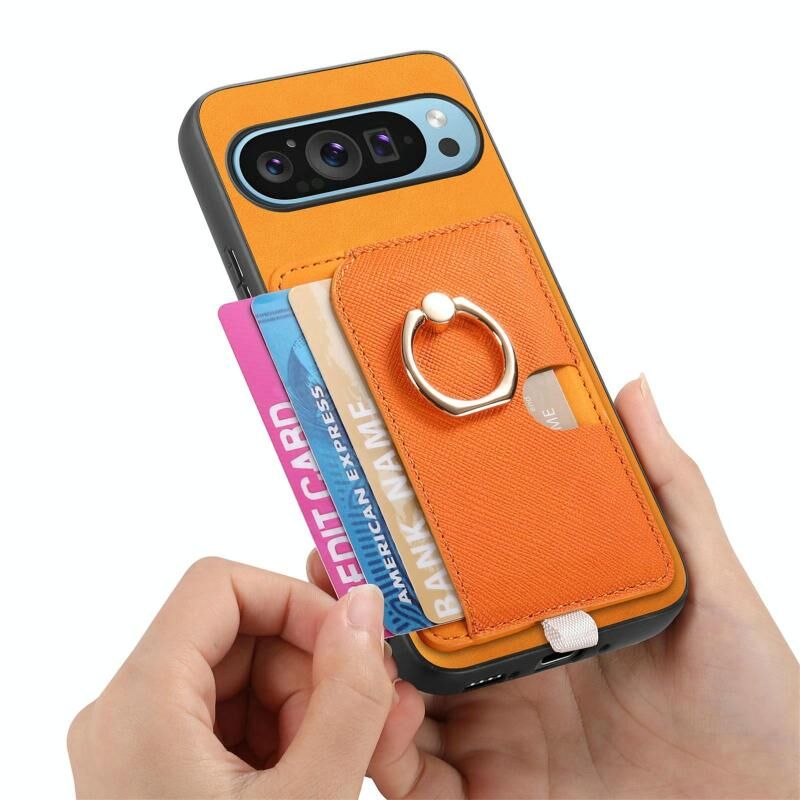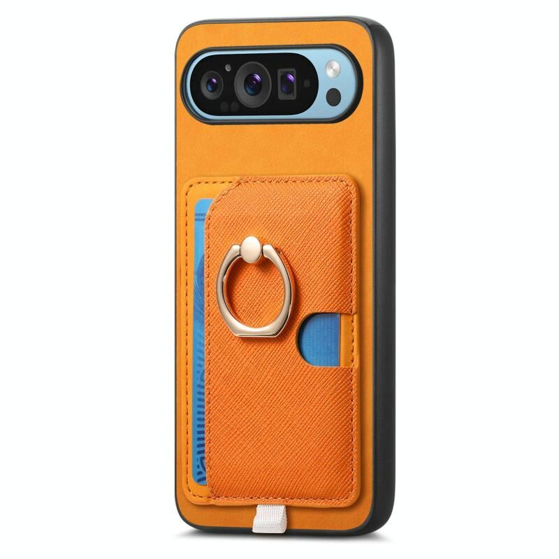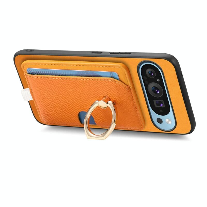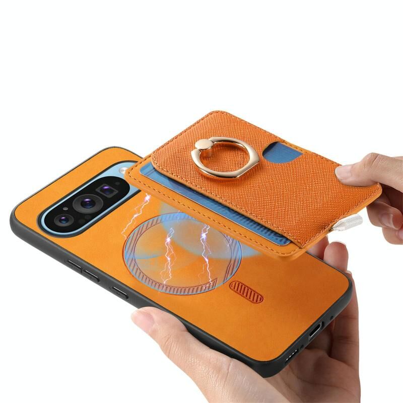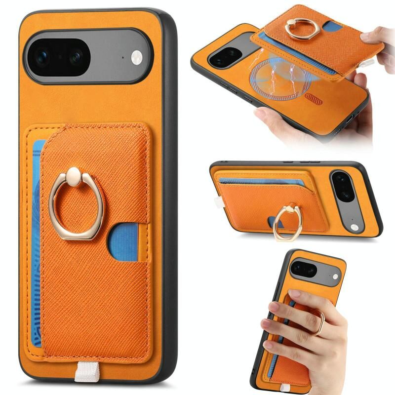 Θήκη τηλεφώνου Google Pixel 7 Retro Cross Leather Ring Side Insert Card Bag MagSafe (Κίτρινο)
