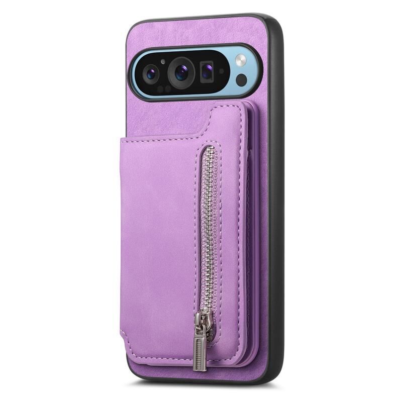 For Google Pixel 7 Retro MagSafe Zipper Wallet Card Bag Back Phone Case(Purple)