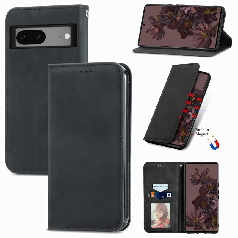 Για το Google Pixel 7 Ρετρό δέρμα αίσθηση μαγνητική δερμάτινη θήκη τηλεφώνου (Μαύρο)