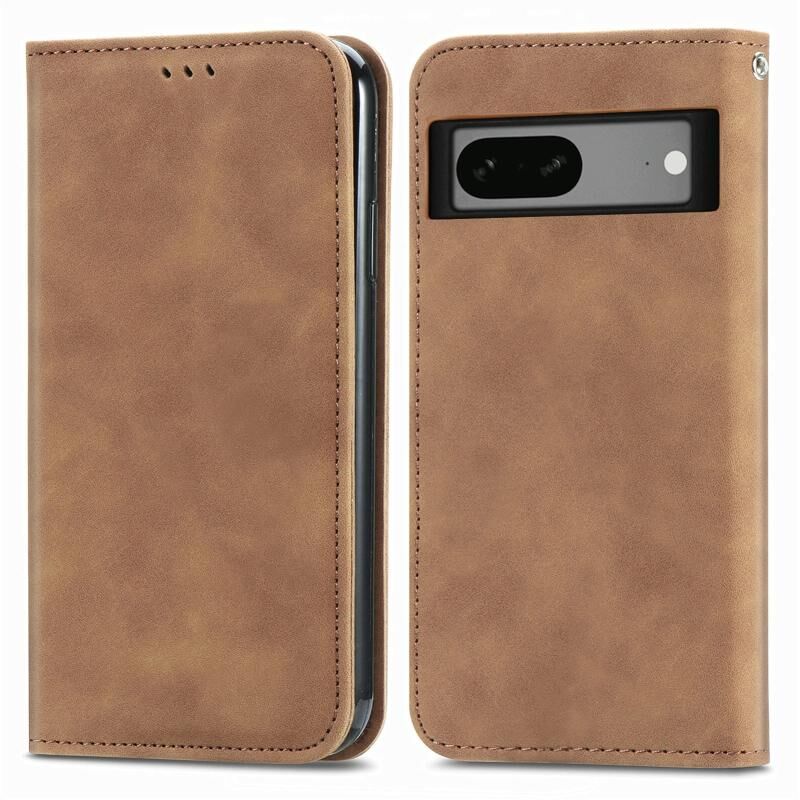 Για το Google Pixel 7 Ρετρό δέρμα αίσθηση μαγνητικό δέρμα τηλέφωνο υπόθεση (καφέ)