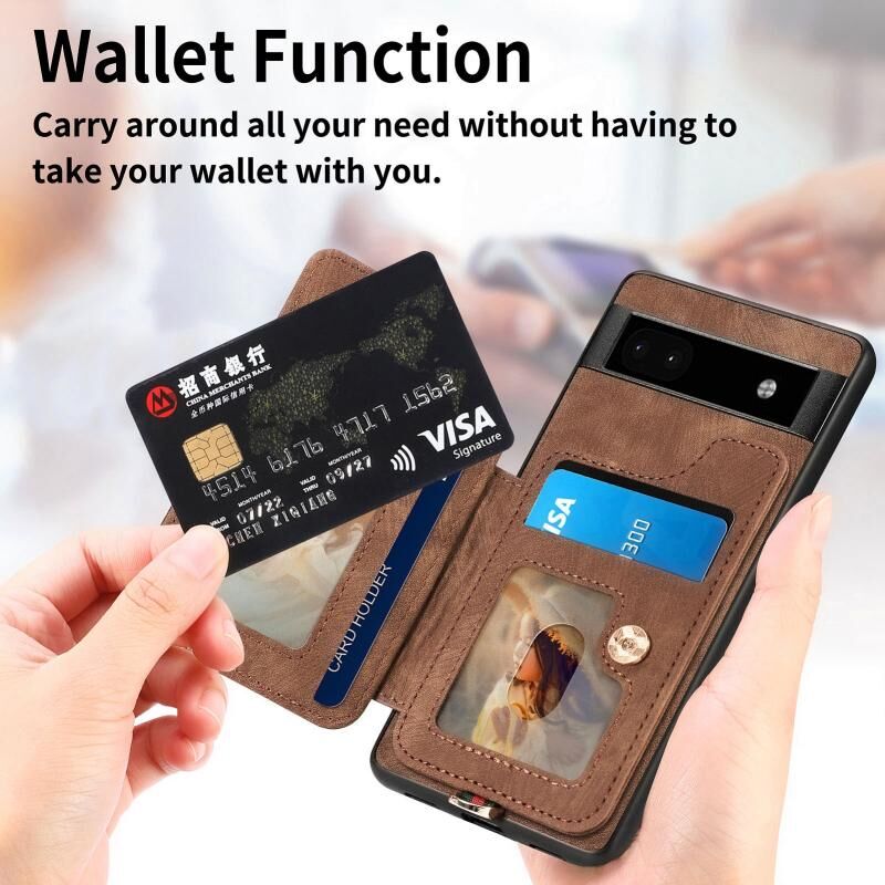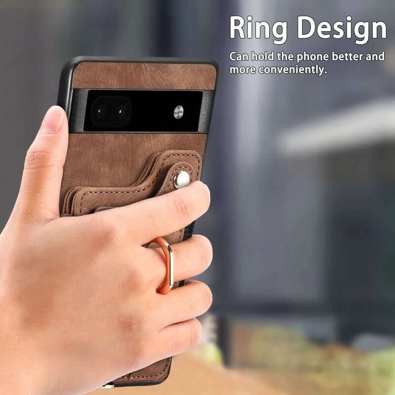 Για το Google Pixel 7 Ρετρό δέρμα αίσθηση δαχτυλίδι πολυ-κάρτα RFID πορτοφόλι υπόθεση τηλεφώνου (καφέ)