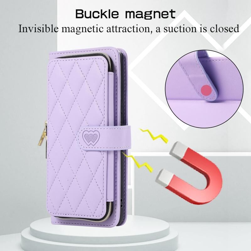 Για Google Pixel 7 Rhombic Πλήρης φερμουάρ πορτοφόλι δερμάτινη θήκη τηλεφώνου (μωβ)