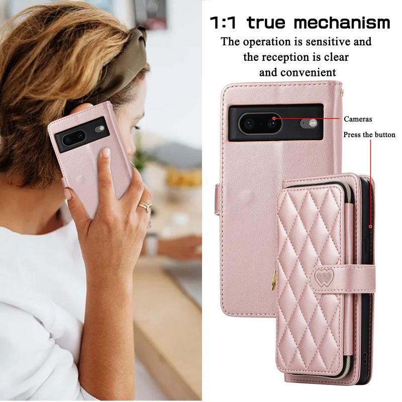 Για το Google Pixel 7 Rhombic πλήρη φερμουάρ πορτοφόλι δερμάτινη θήκη τηλεφώνου (Rose Gold)