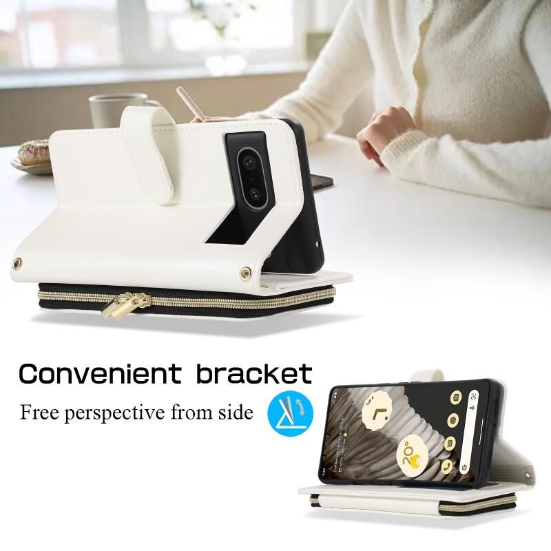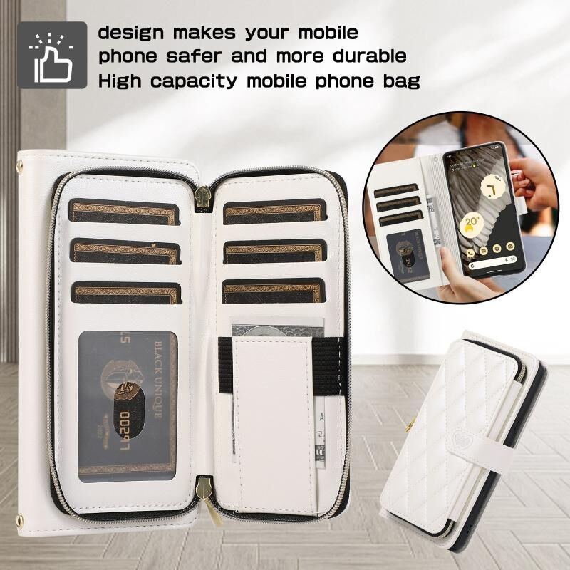 Για το Google Pixel 7 Rhombic Πλήρης φερμουάρ πορτοφόλι δερμάτινη θήκη τηλεφώνου (λευκό)
