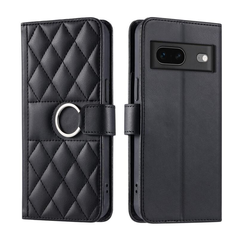 For Google Pixel 7 Ring Buckle Rhombic Leather Phone Case(Black)