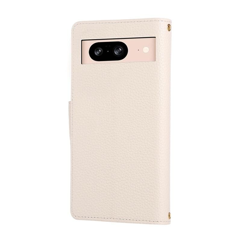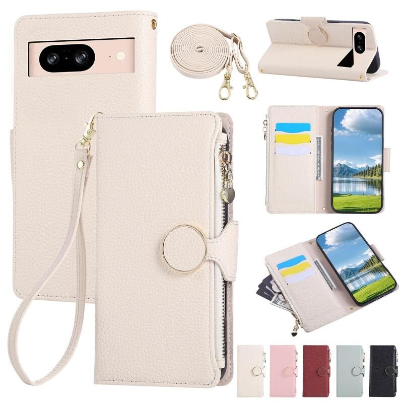 For Google Pixel 7 Round Buckle Zipper Wallet Leather Phone Case with Crossbody Strap(White)