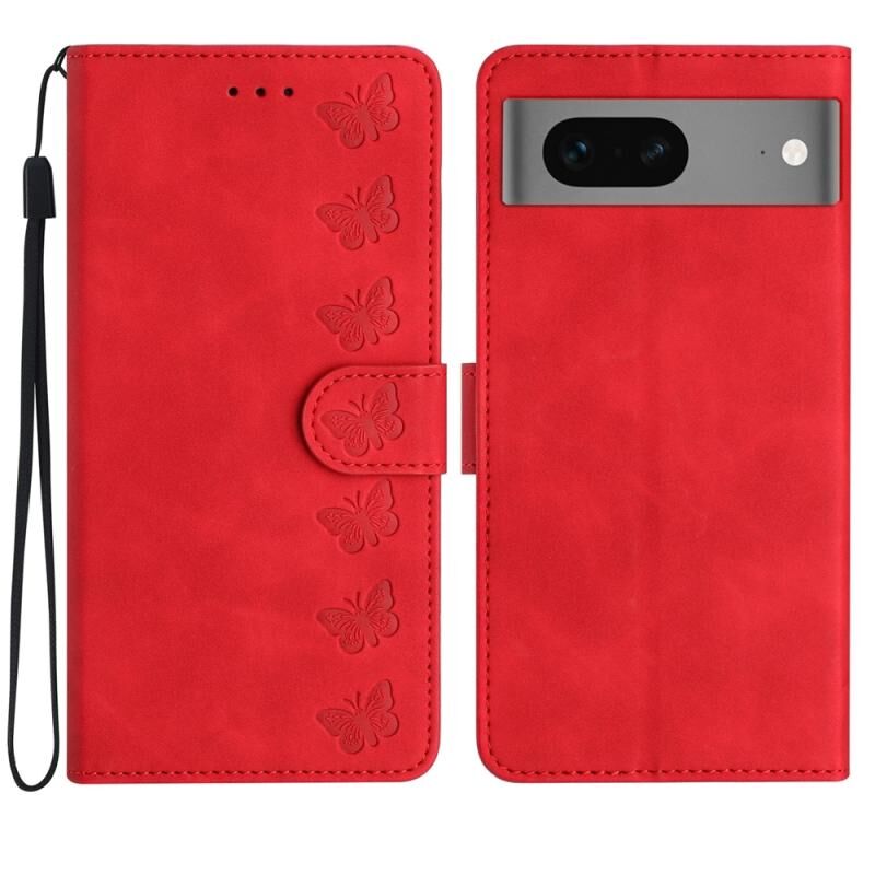 Για το Google Pixel 7 Επτά πεταλούδες ανάγλυφη δερμάτινη θήκη τηλεφώνου (κόκκινο)