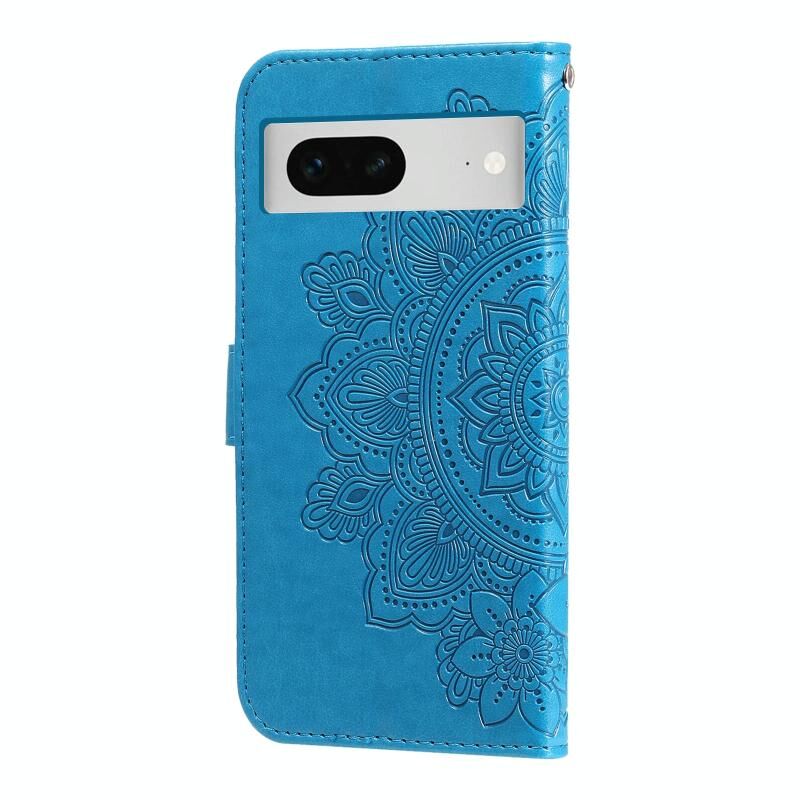 Θήκη τηλεφώνου από δέρμα με ανάγλυφα επτάφυλλα λουλούδια για Google Pixel 7 (Μπλε)