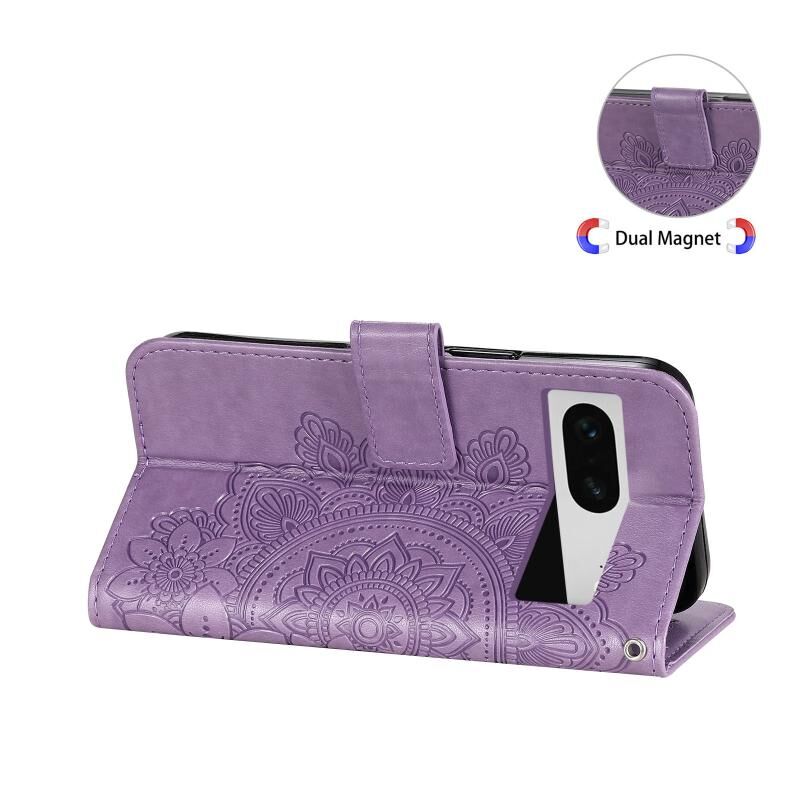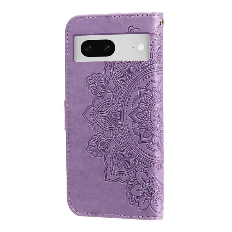Θήκη τηλεφώνου από δέρμα με ανάγλυφα επτάφυλλα λουλούδια για Google Pixel 7 (Ανοιχτό Μωβ)