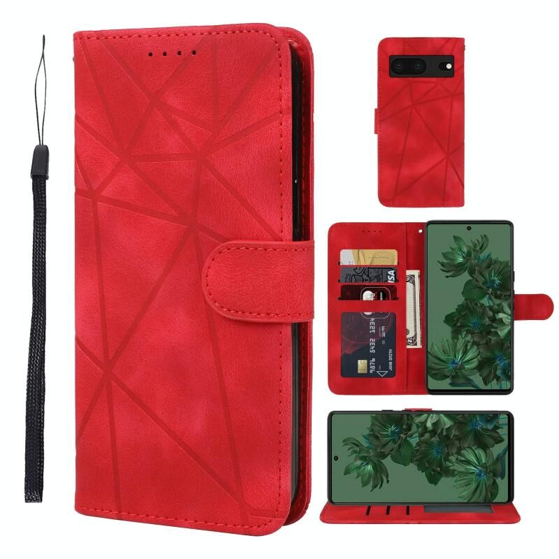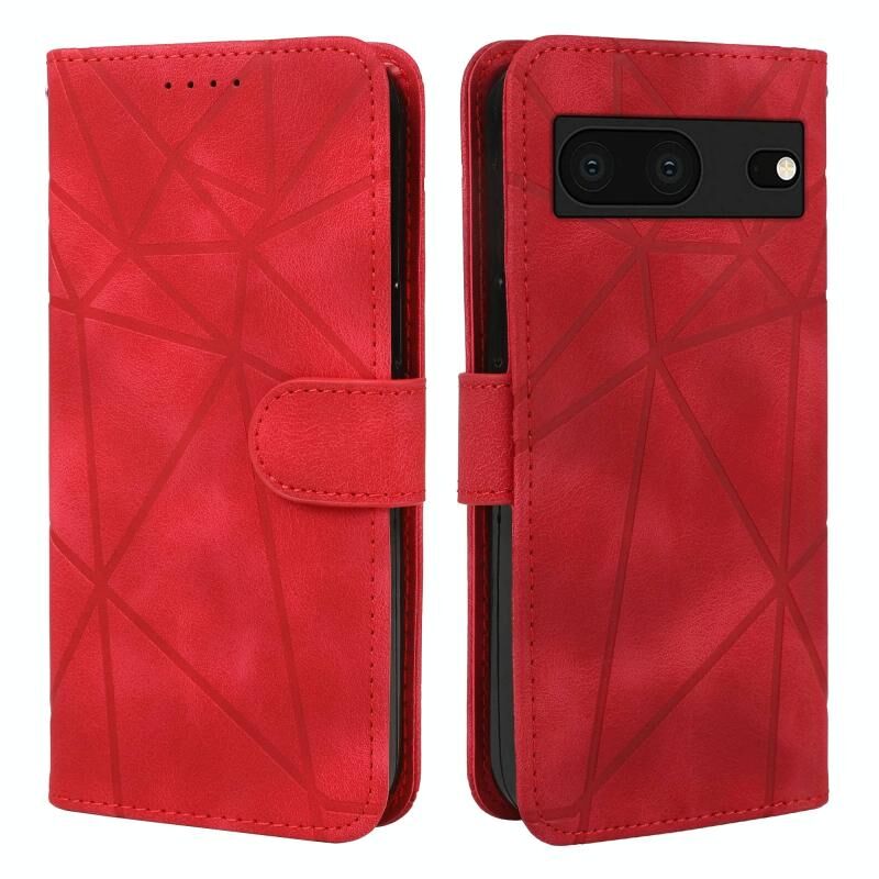 Για το Google Pixel 7 Skin Feel Γεωμετρικές γραμμές δερμάτινη θήκη τηλεφώνου (κόκκινο)