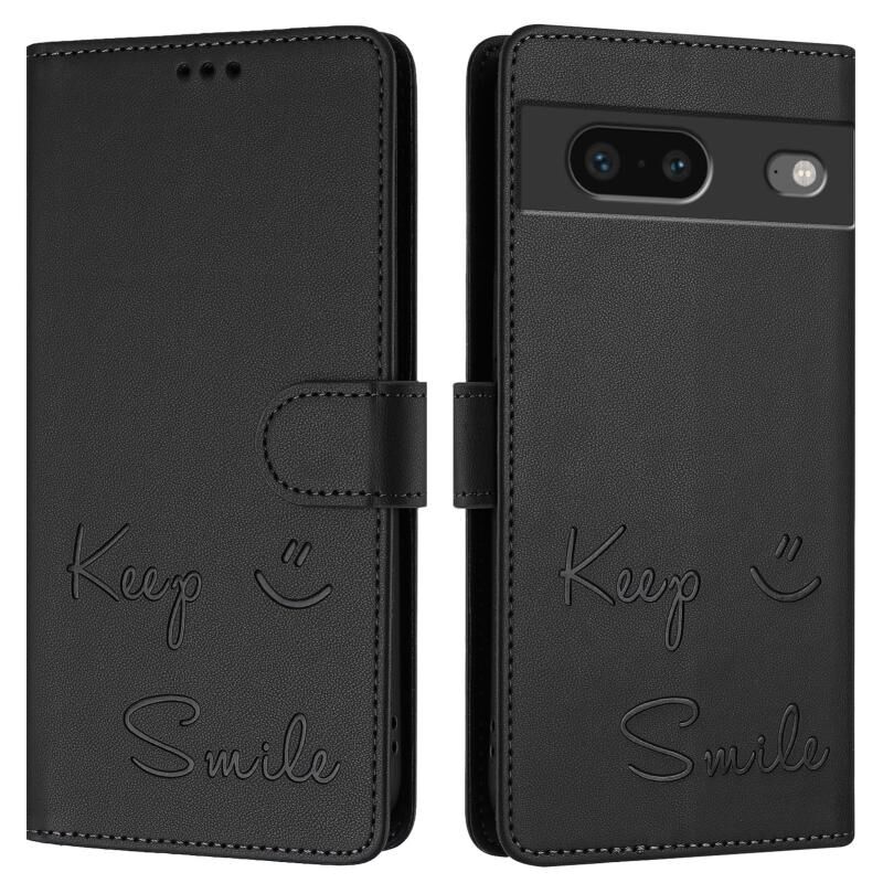 Για το Google Pixel 7 Smile ανάγλυφο RFID δερμάτινη θήκη τηλεφώνου (μαύρο)