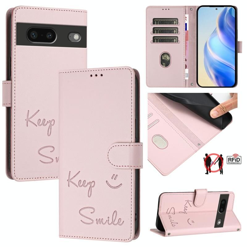 Για το Google Pixel 7 Smile ανάγλυφο RFID δερμάτινη θήκη τηλεφώνου (ροζ)