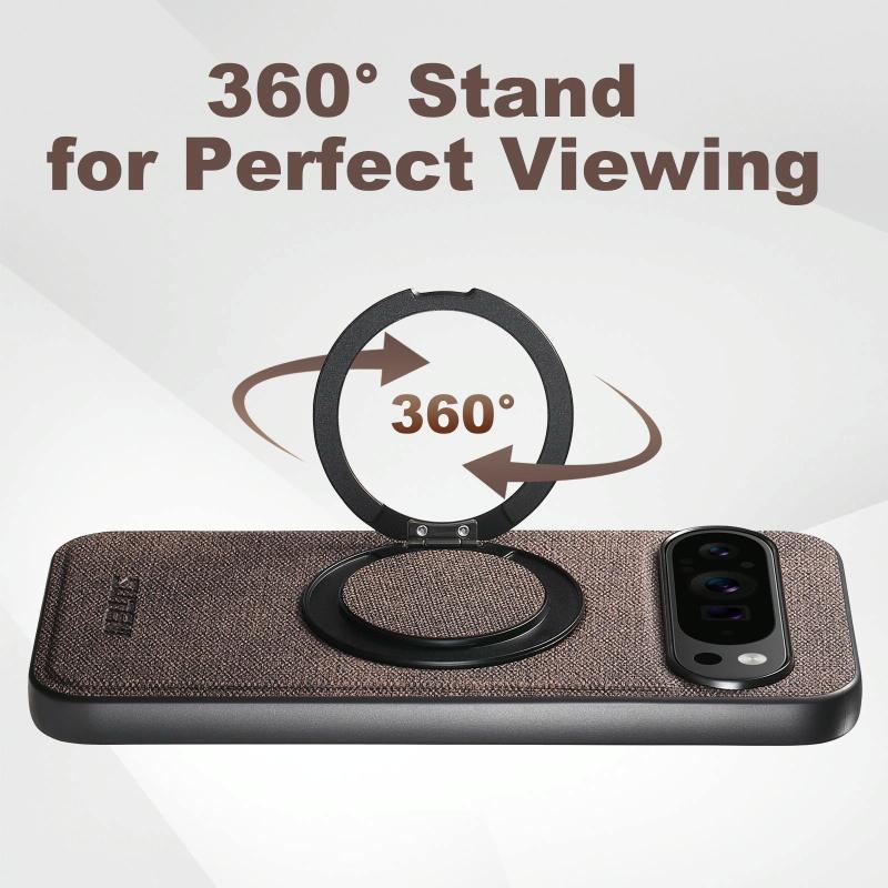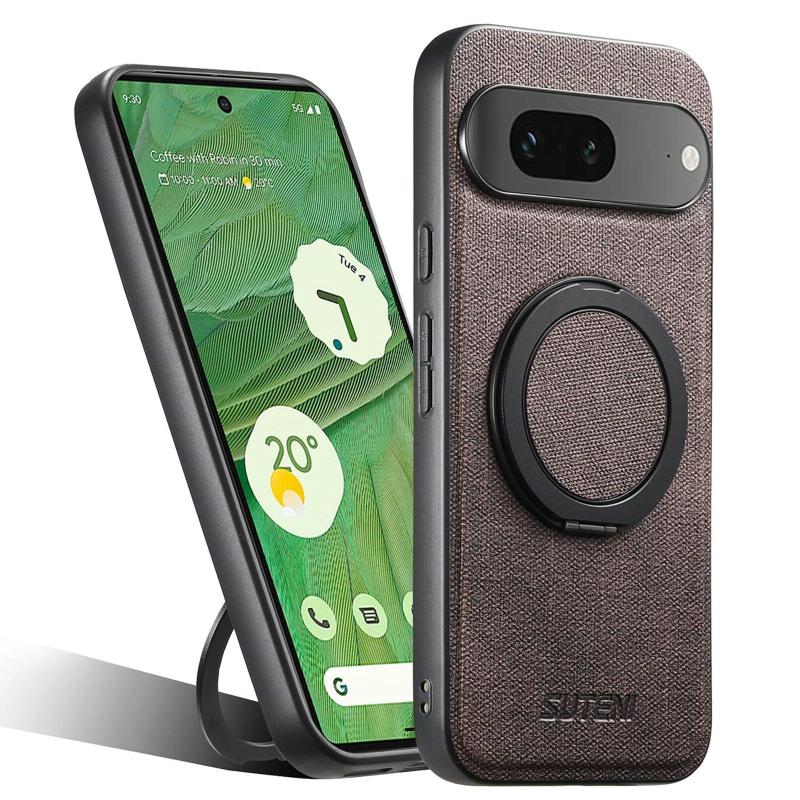 For Google Pixel 7 Suteni G3 360 Rotation Holder MagSafe Denim Leather Back Phone Case(Brown) (Suteni)