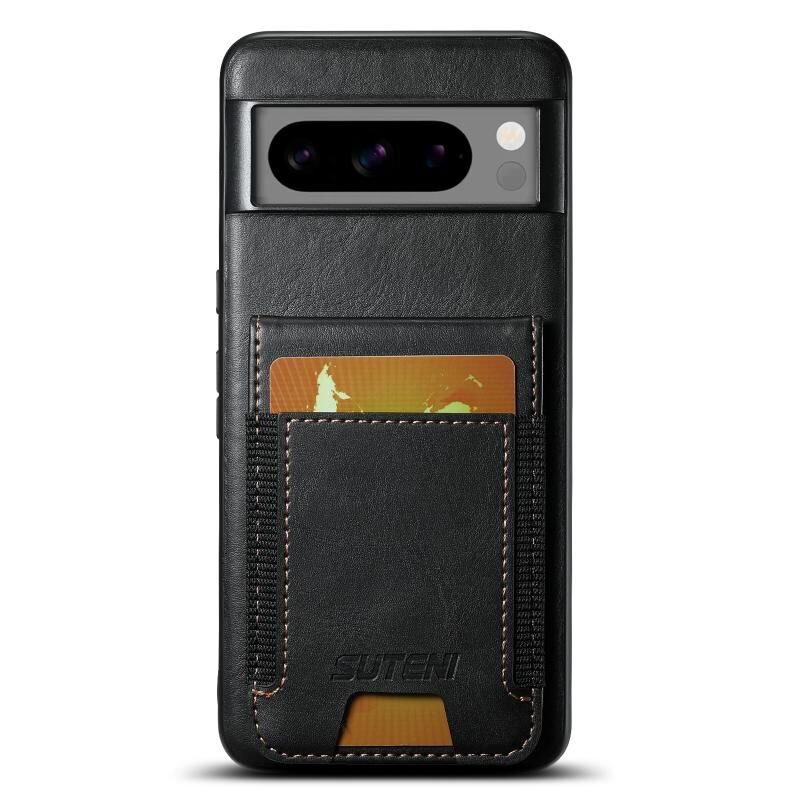 Θήκη κινητού τηλεφώνου Google Pixel 7 Suteni H03 από δέρμα με κερί λαδιού και βάση στήριξης (Μαύρο) (Suteni)