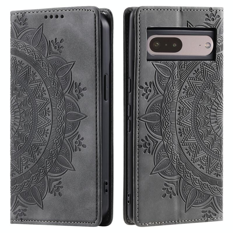 Για Google Pixel 7 Totem ανάγλυφη μαγνητική δερμάτινη θήκη τηλεφώνου (γκρι)