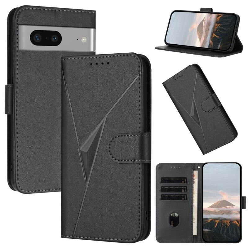 Για Google Pixel 7 Τρίγωνο μοτίβο πόρπη κούμπωμα δερμάτινη θήκη τηλεφώνου (μαύρο)