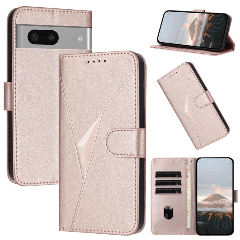 Για Google Pixel 7 Τρίγωνο μοτίβο αγκράφα κούμπωμα δερμάτινη θήκη τηλεφώνου (Rose Gold)