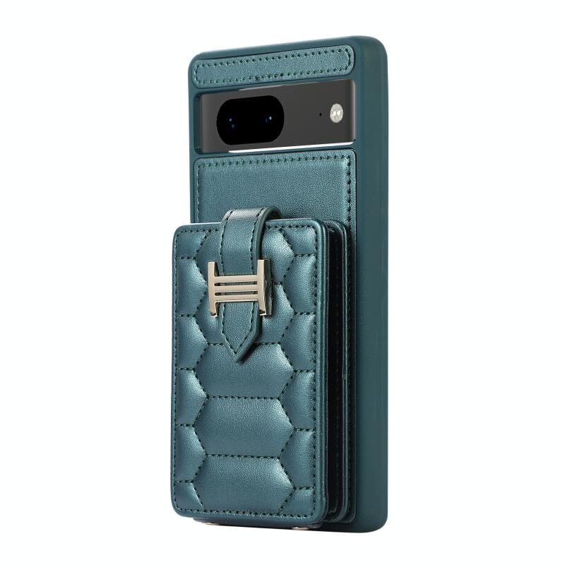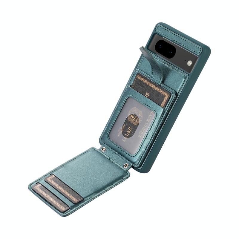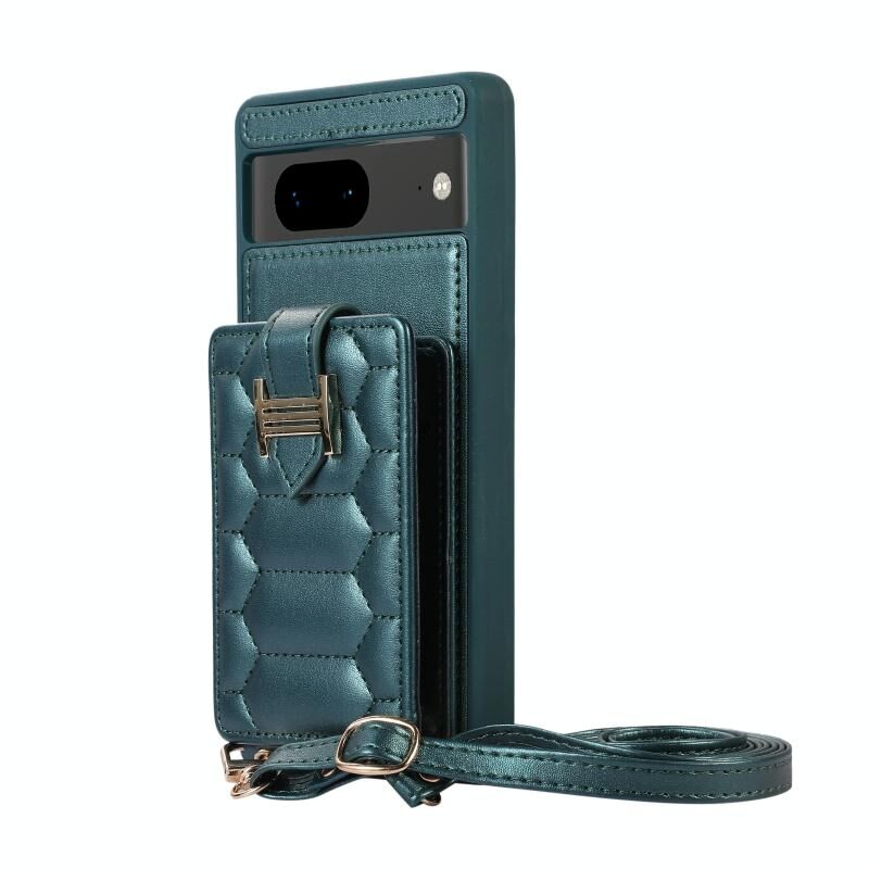 Για το Google Pixel 7 Κάθετη τσάντα κάρτας δαχτυλίδι κάτοχος θήκη τηλεφώνου με διπλό κορδόνι (σκούρο πράσινο)