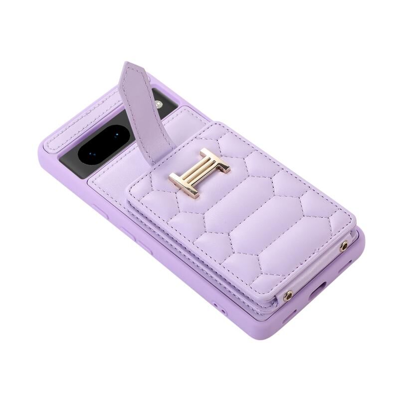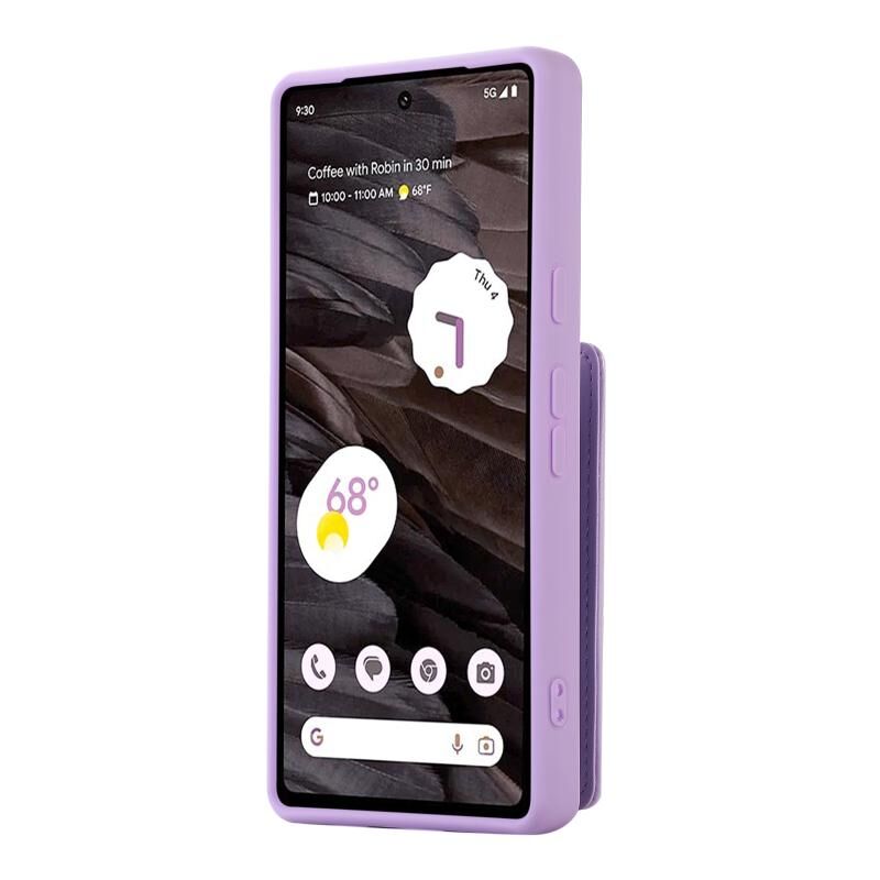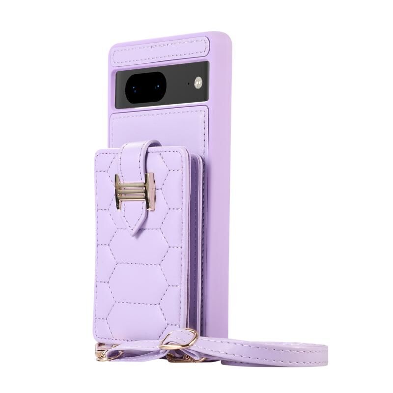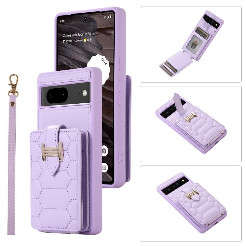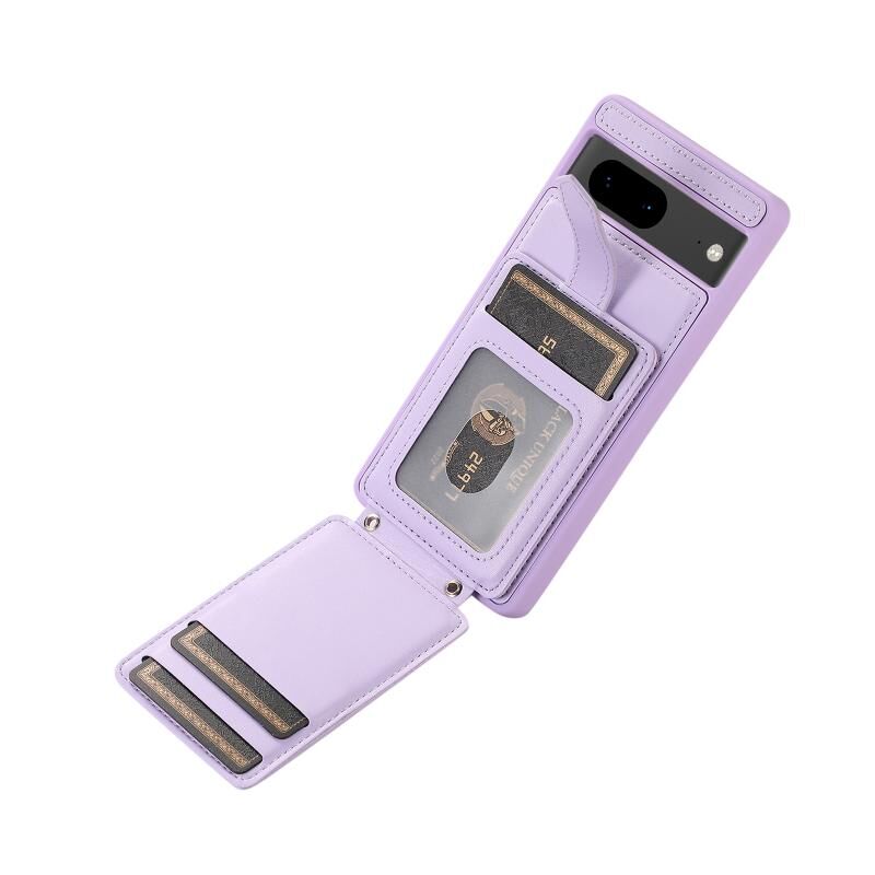 Για το Google Pixel 7 Κάθετη τσάντα κάρτας δαχτυλίδι κάτοχος υπόθεση τηλεφώνου με διπλό κορδόνι (μωβ)