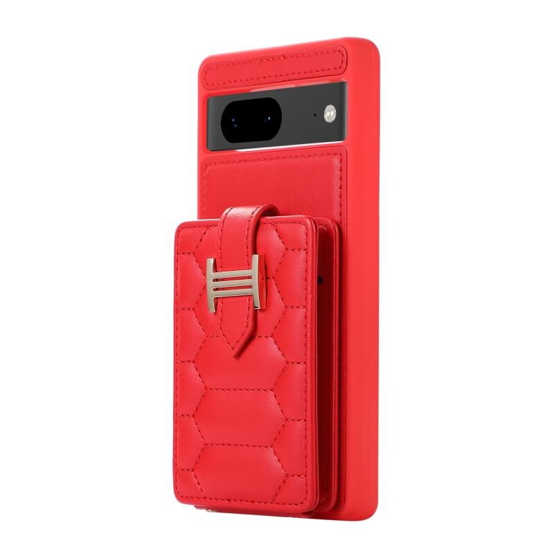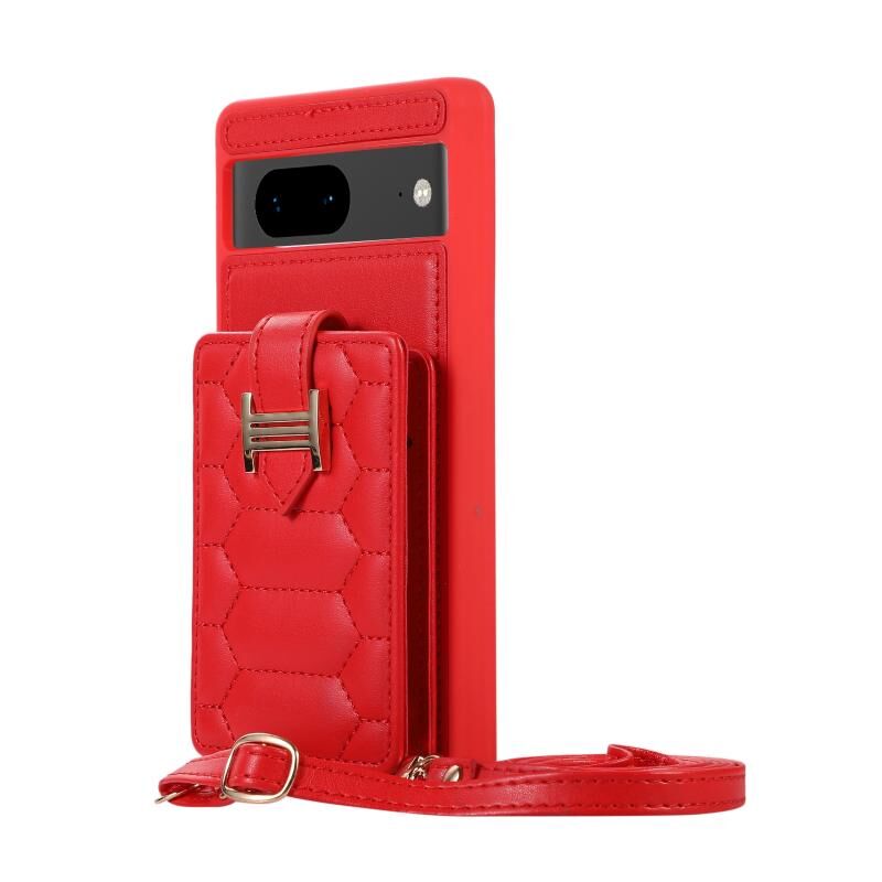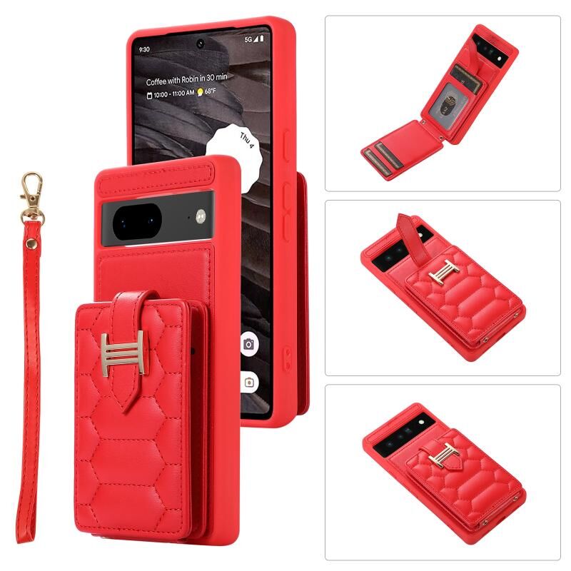 Για το Google Pixel 7 Κάθετη τσάντα κάρτας δαχτυλίδι κάτοχος θήκη τηλεφώνου με διπλό κορδόνι (κόκκινο)