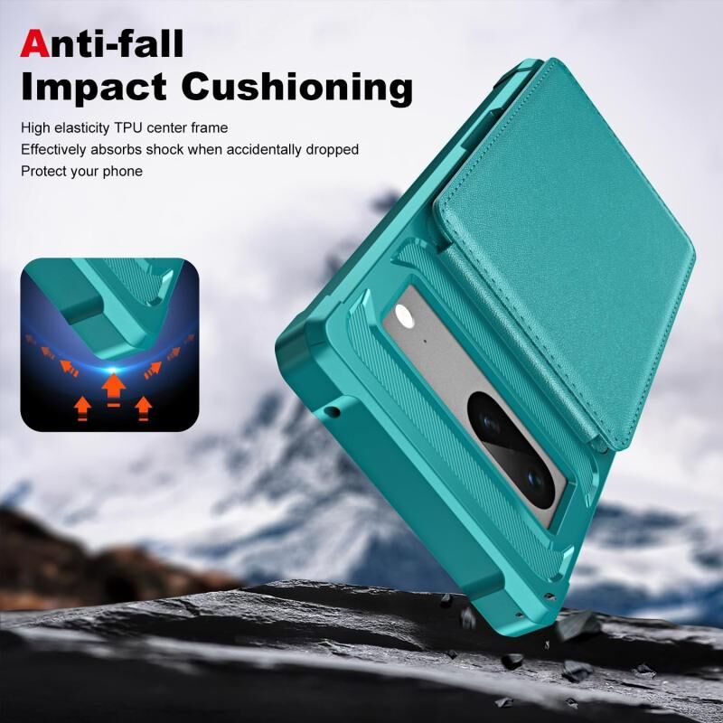 Για το Google Pixel 7 Κάθετη Flip κάρτα τσάντα κάτοχος δερμάτινη θήκη τηλεφώνου (κυανό πράσινο)