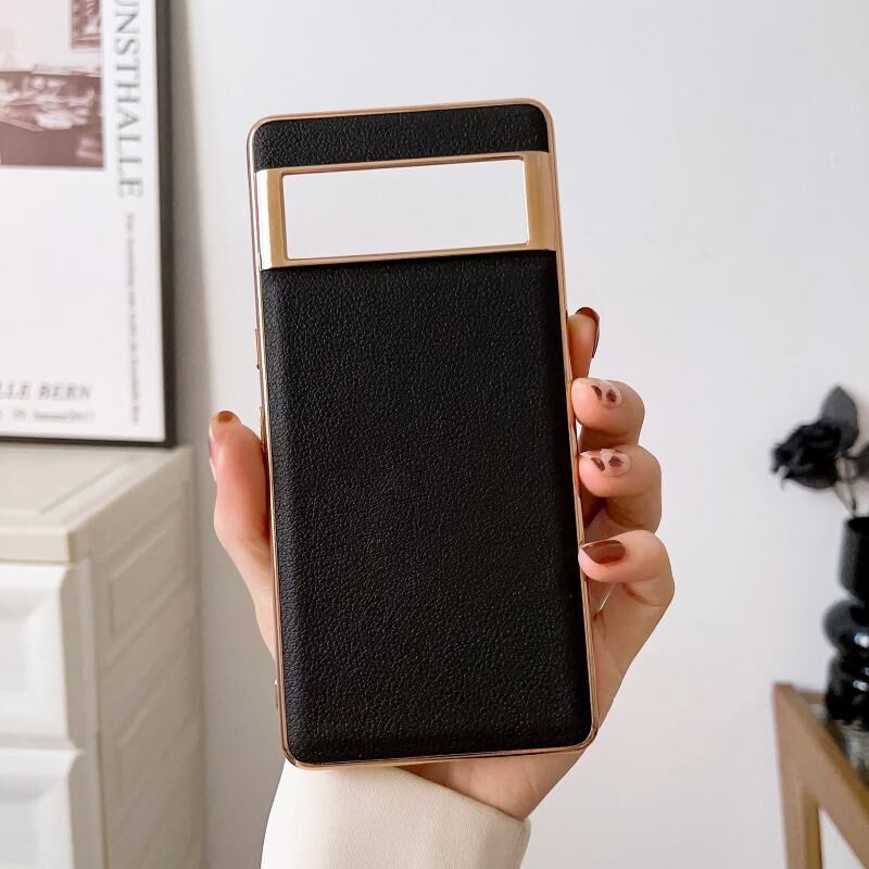 Θήκη τηλεφώνου από γνήσιο δέρμα με νανο-επίχρυση, σειρά Waves για Google Pixel 7 (Μαύρο)