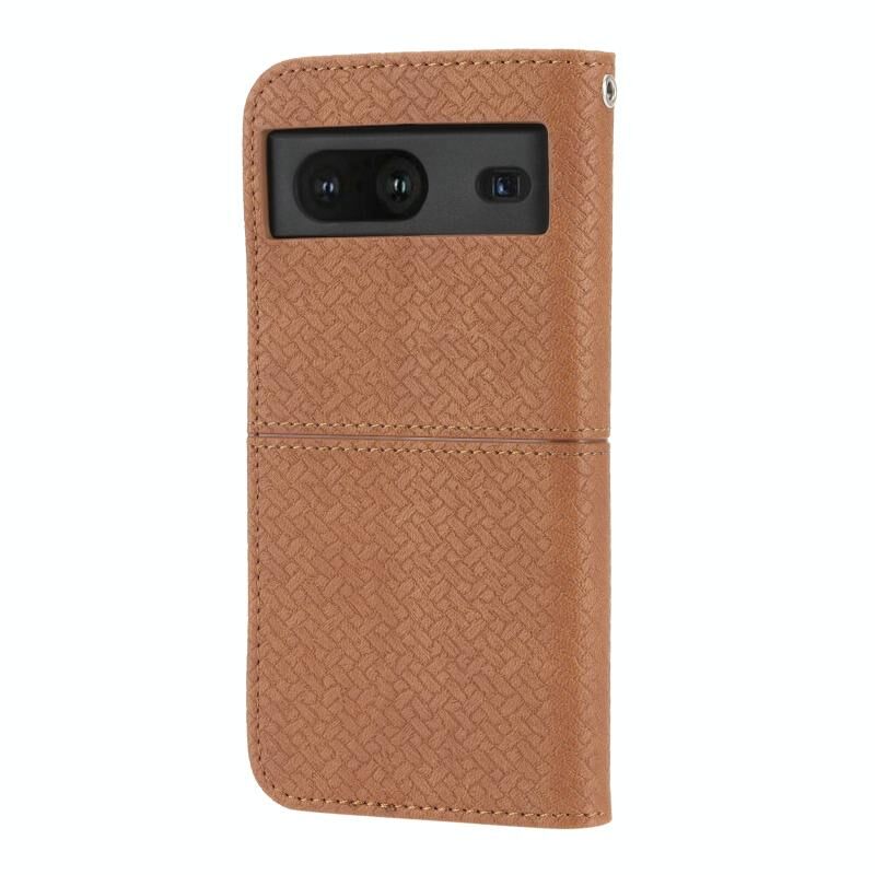 Για το Google Pixel 7 Υφαντή υφή ραφή μαγνητική PU δέρμα τηλέφωνο υπόθεση (καφέ)