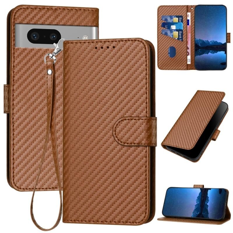 For Google Pixel 7 YX0070 Carbon Fiber Buckle Leather Phone Case with Lanyard(Coffee)