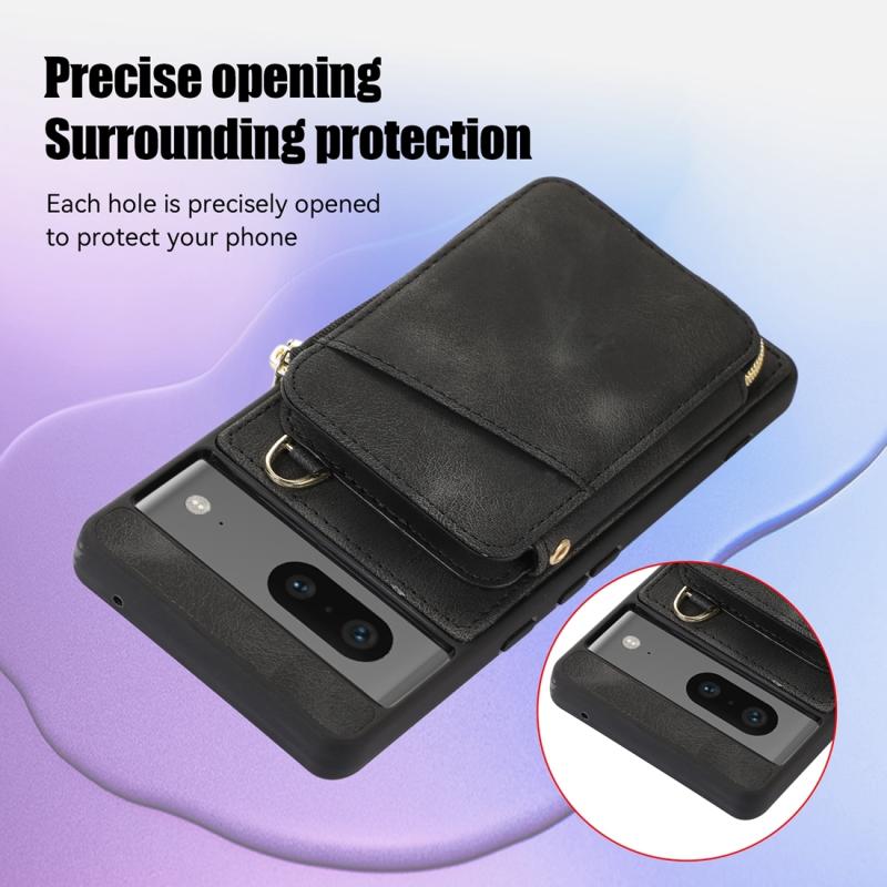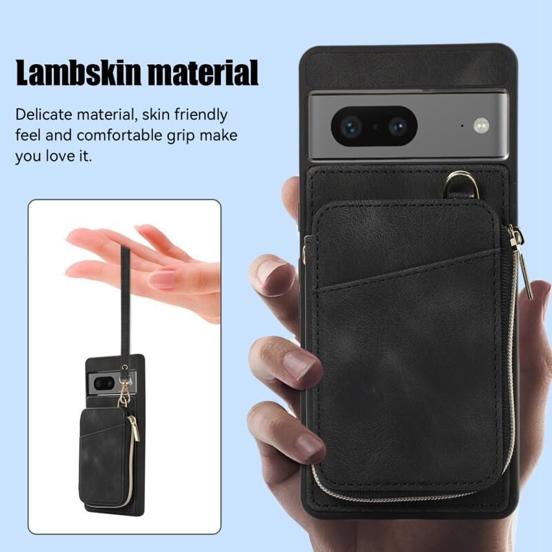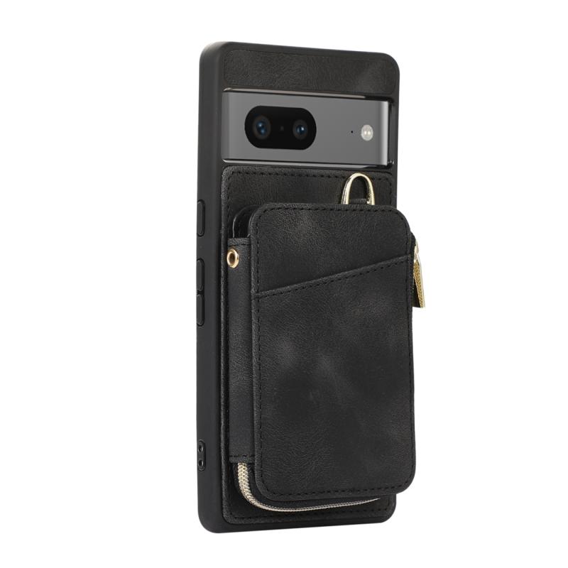 For Google Pixel 7 Zipper Card Bag Back Cover Phone Case(Black)