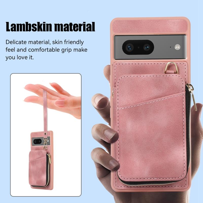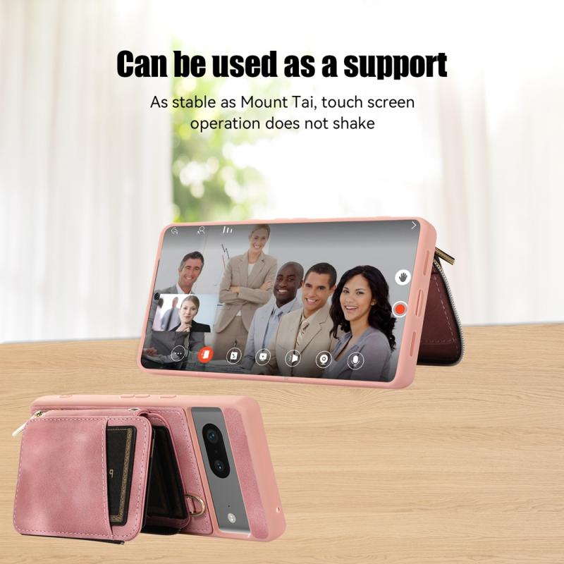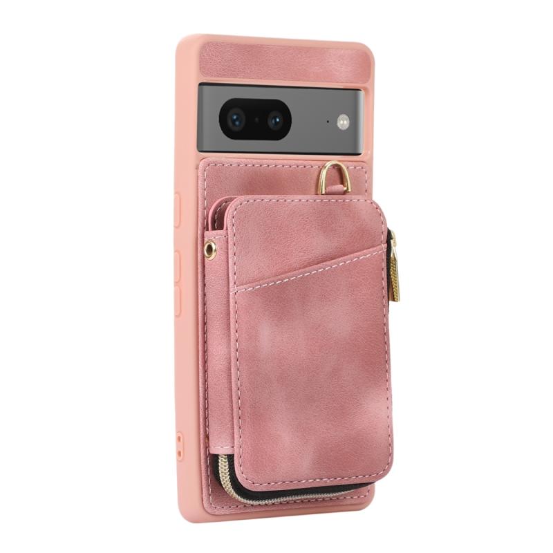 For Google Pixel 7 Zipper Card Bag Back Cover Phone Case(Pink)
