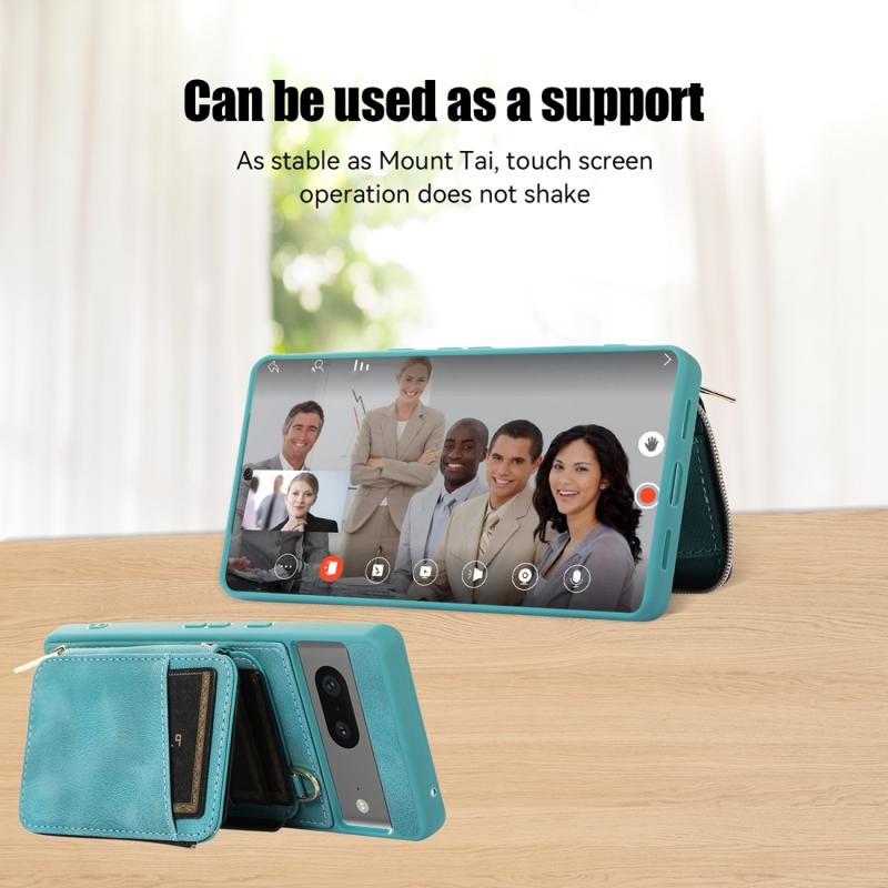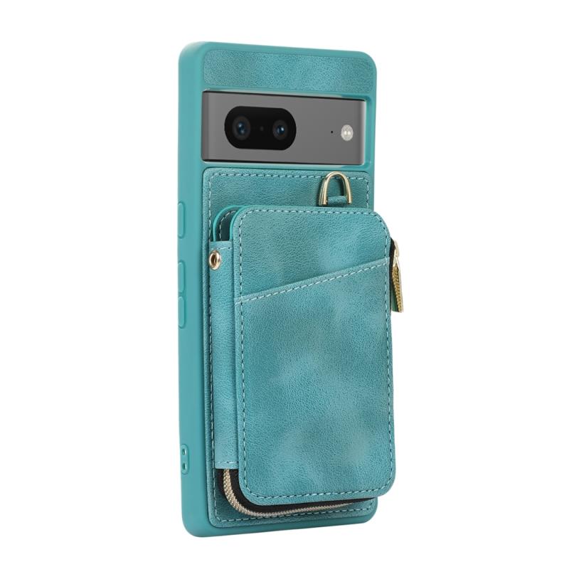 For Google Pixel 7 Zipper Card Bag Back Cover Phone Case(Turquoise)
