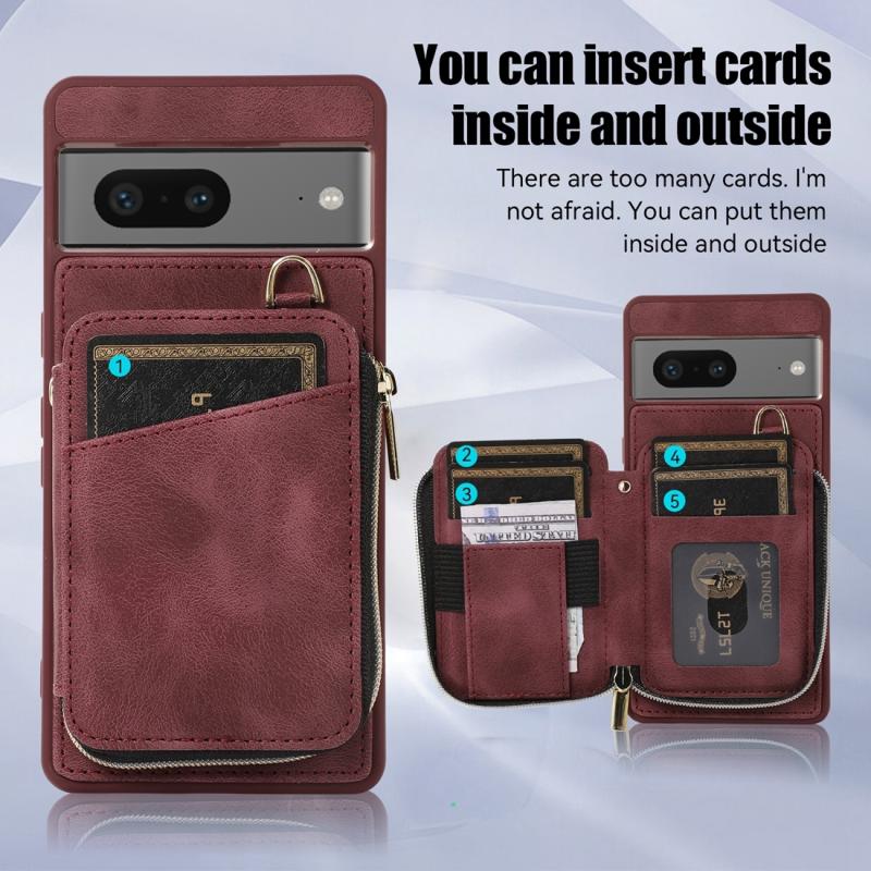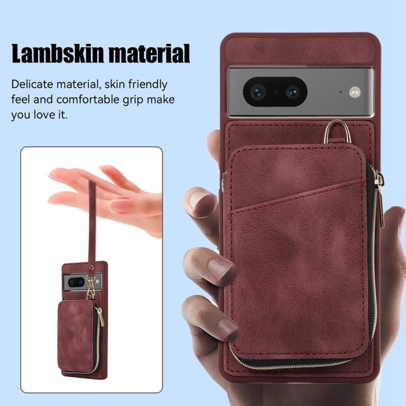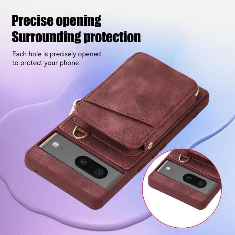 For Google Pixel 7 Zipper Card Bag Back Cover Phone Case(Wine Red)