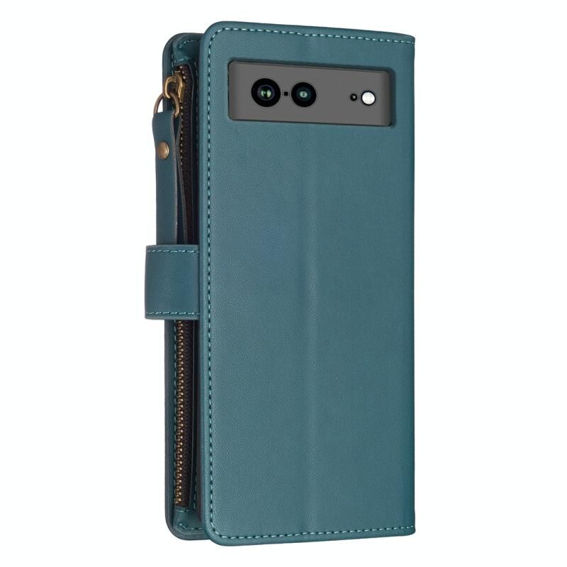 Θήκη τηλεφώνου Google Pixel 7a, δερμάτινη, flip, με φερμουάρ και 9 θήκες για κάρτες (ανοιχτό μωβ)