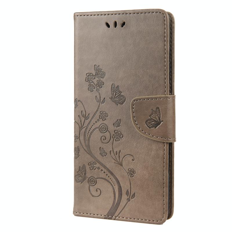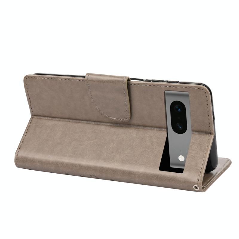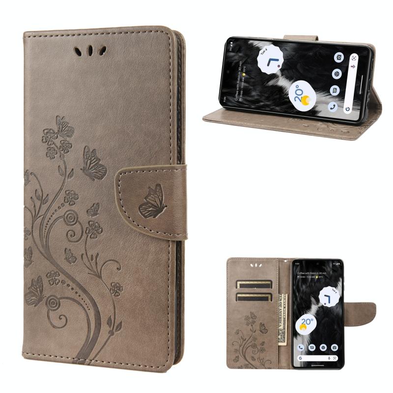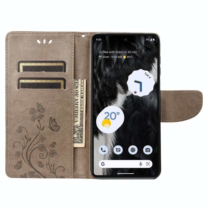Θήκη τηλεφώνου από δέρμα με σχέδιο πεταλούδας και λουλουδιών για Google Pixel 7a (Γκρι)