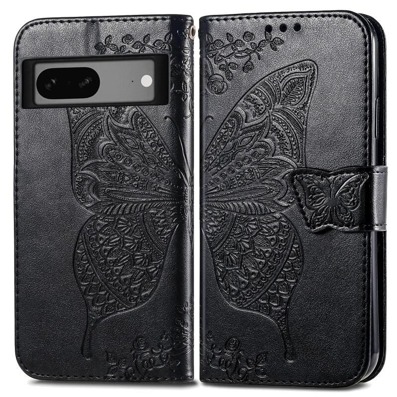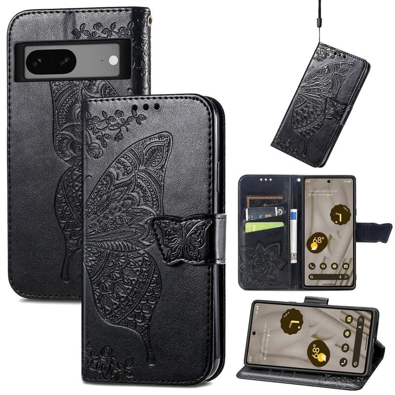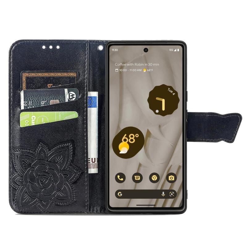 Θήκη τηλεφώνου από δέρμα με ανάγλυφο σχέδιο πεταλούδας και λουλουδιών για Google Pixel 7A (Μπλε)