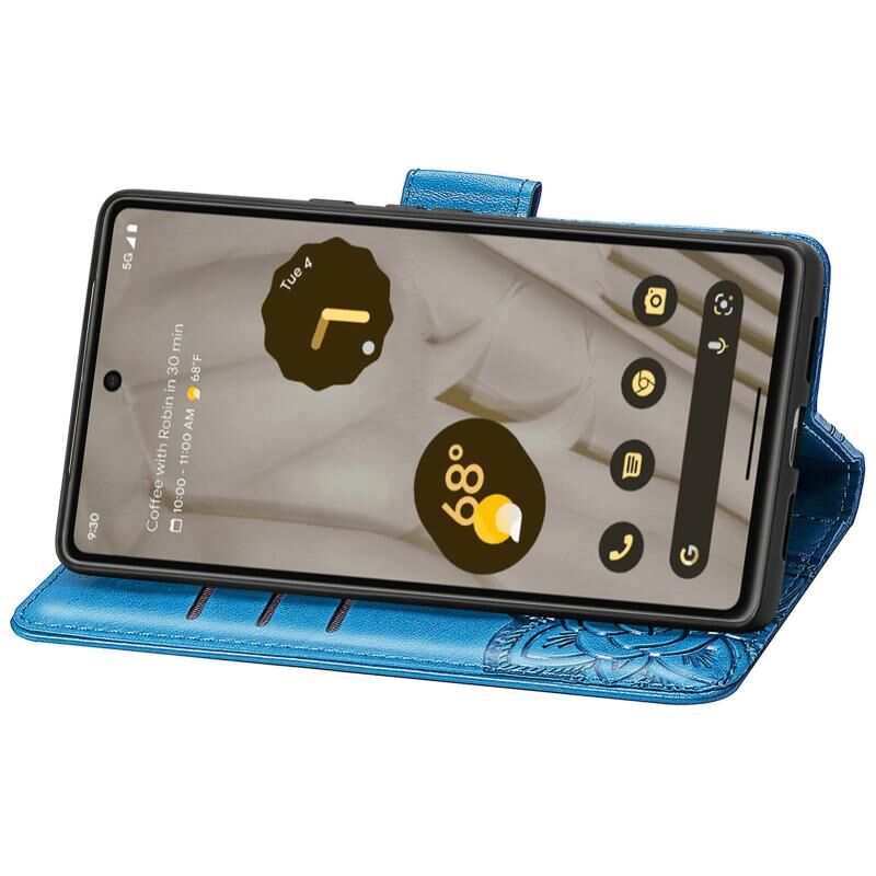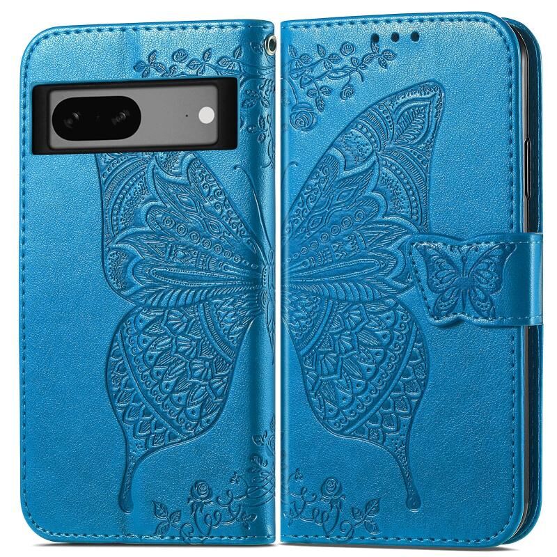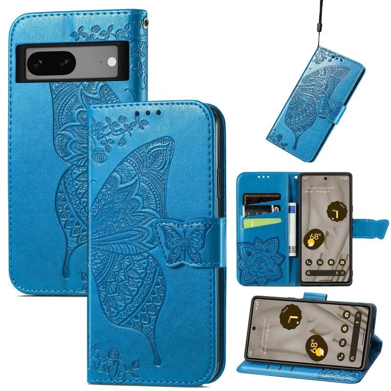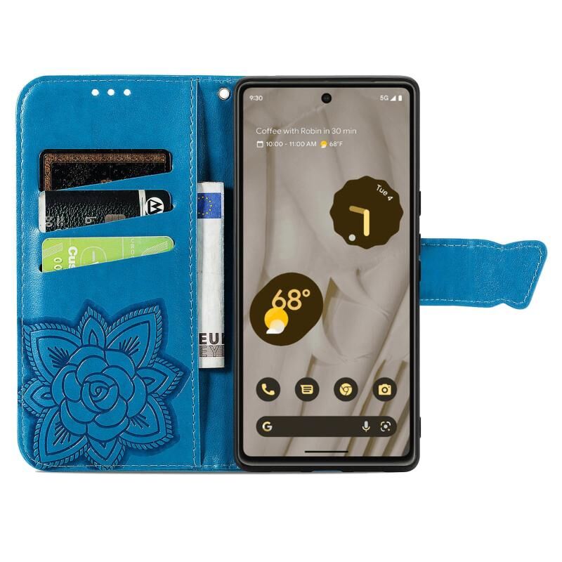 Θήκη τηλεφώνου από δέρμα με ανάγλυφο σχέδιο πεταλούδας και λουλουδιών για Google Pixel 7A (Μπλε)