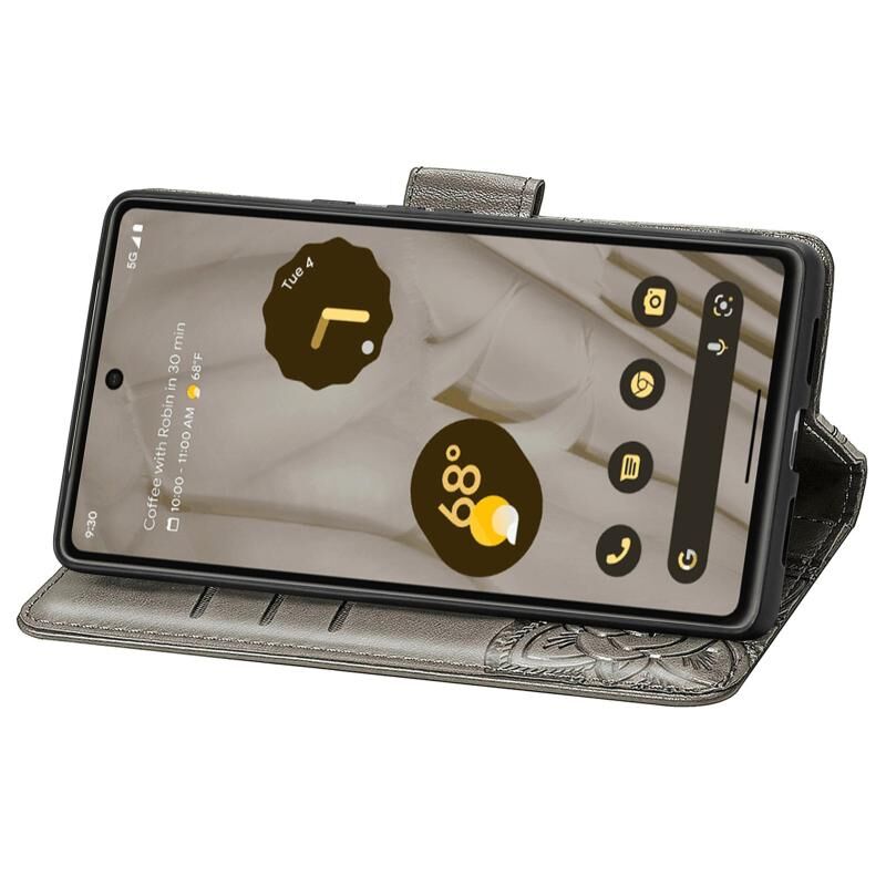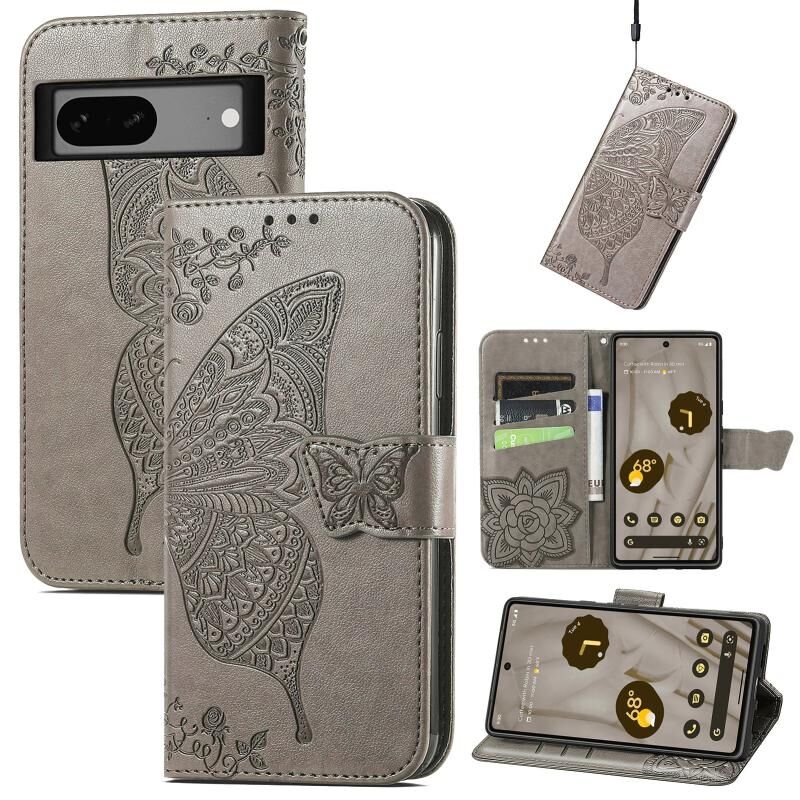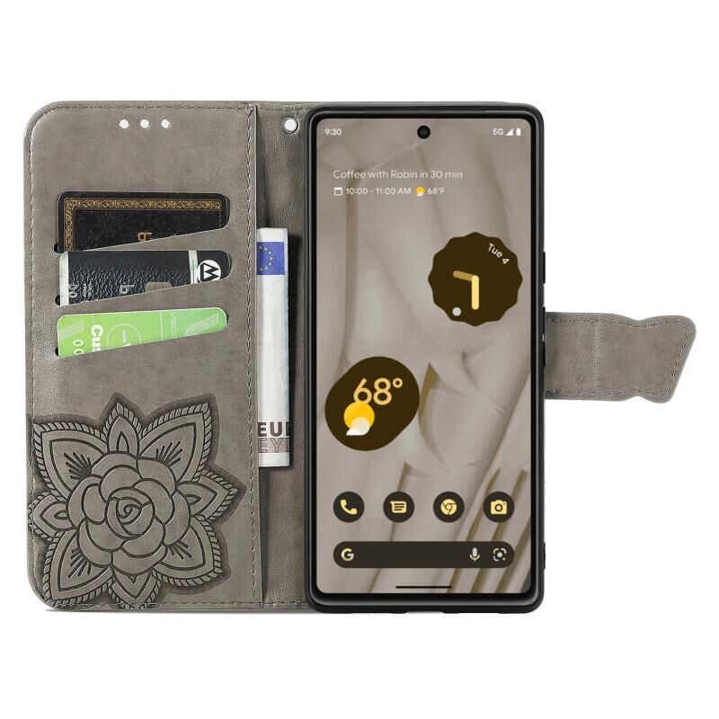 Θήκη τηλεφώνου από δέρμα με ανάγλυφο σχέδιο πεταλούδας και λουλουδιών για Google Pixel 7A (Μπλε)