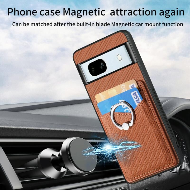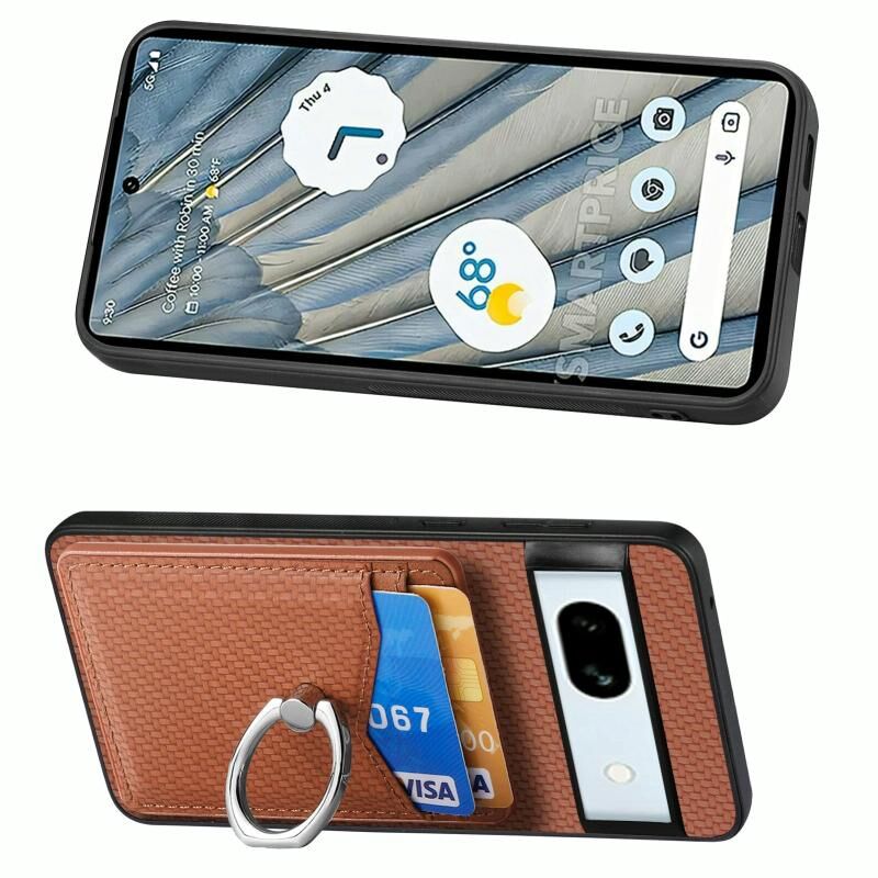 Για το Google Pixel 7A Carbon Fiber κάρτα πορτοφόλι δαχτυλίδι κάτοχος θήκη τηλεφώνου (καφέ)